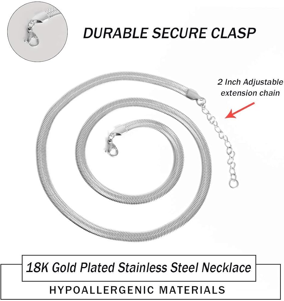 Herringbone Necklace Length: We offer 14”-22''+2''extender chains, adjustable chains can help you find a comfortable length.