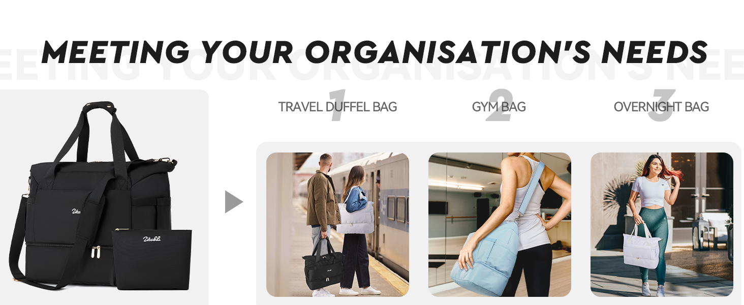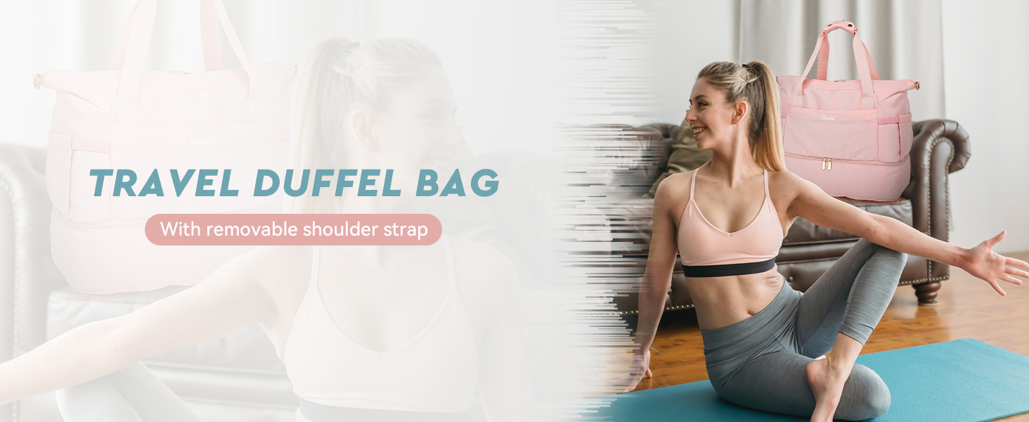✈ PORTABLE& WIDE APPLICATION✈ The removable shoulder strap has comfortable padding to reduce the pressure when carrying. You can also carry it as a handbag, shoulder bag or messenger bag. The luggage strap on the back of the duffle bag women travel fits perfectly with the trolley of most luggage, freeing your hands. It can be used as a carry on bags for airplanes, duffel bag, gym bag, weekender bag, overnight bag or workout bag.