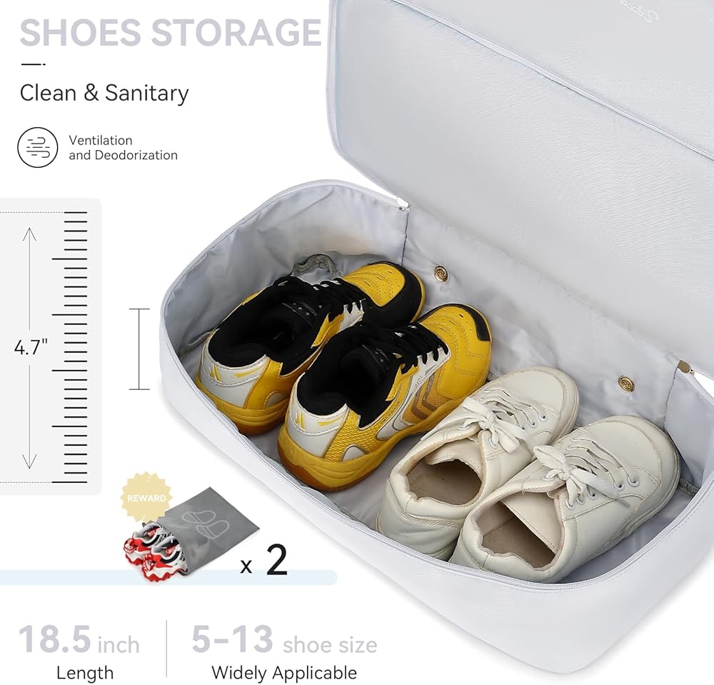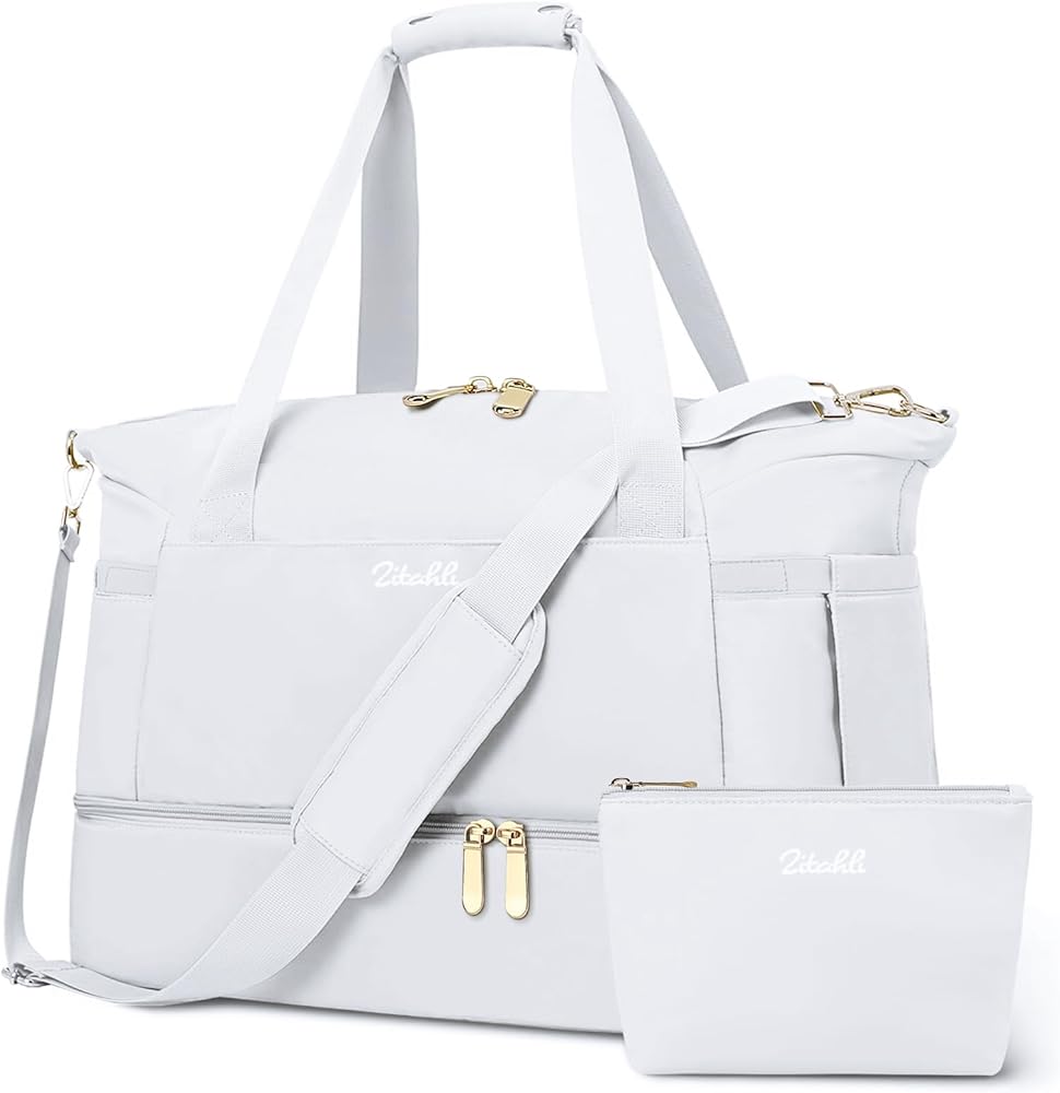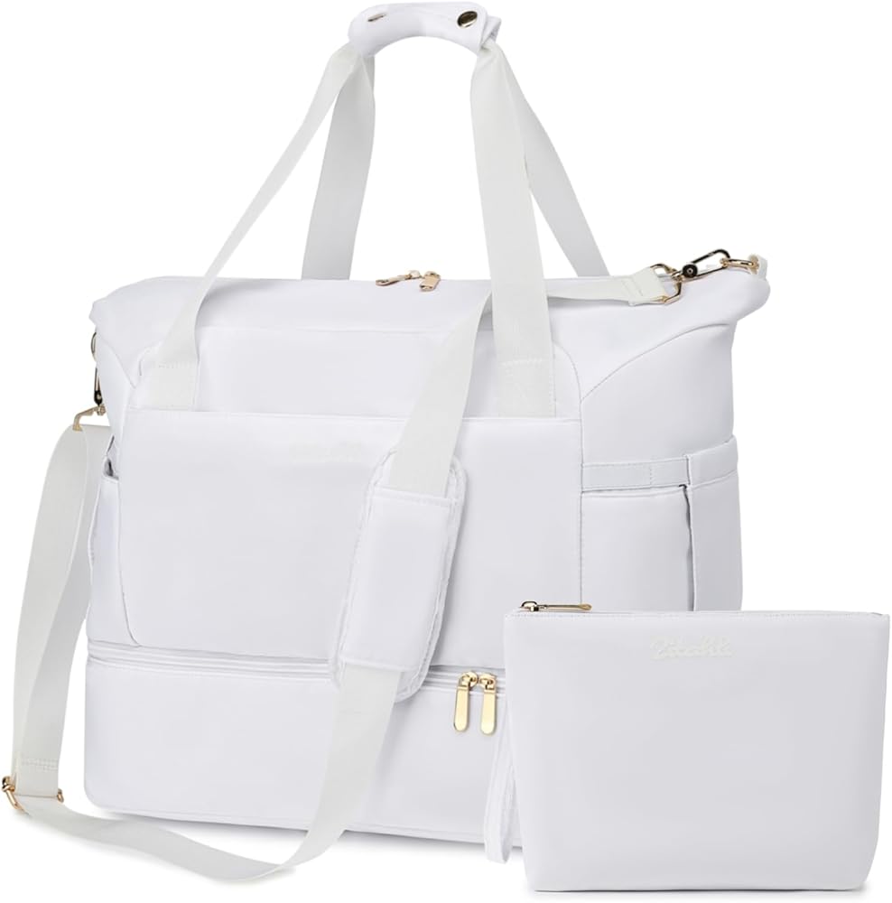 Duffle Bag Women Travel Weekender Bag with Shoe Compartment Overnight Bag with Toiletry Bag Gym Bag Carry on Duffel Bag for Women Men Travel Workout Yoga Sport (White)