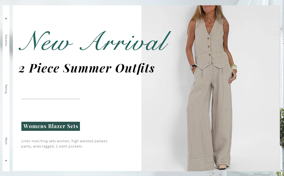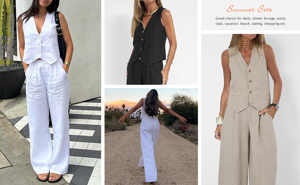 - 2 piece summer outfits women are made of lightweight and breathable linen blending material, soft to touch and comfy to wear.