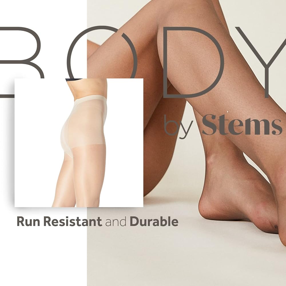 Body by Stems Unbreakable sheer tights are designed in NYC by women, for women, blending comfort and durability.
