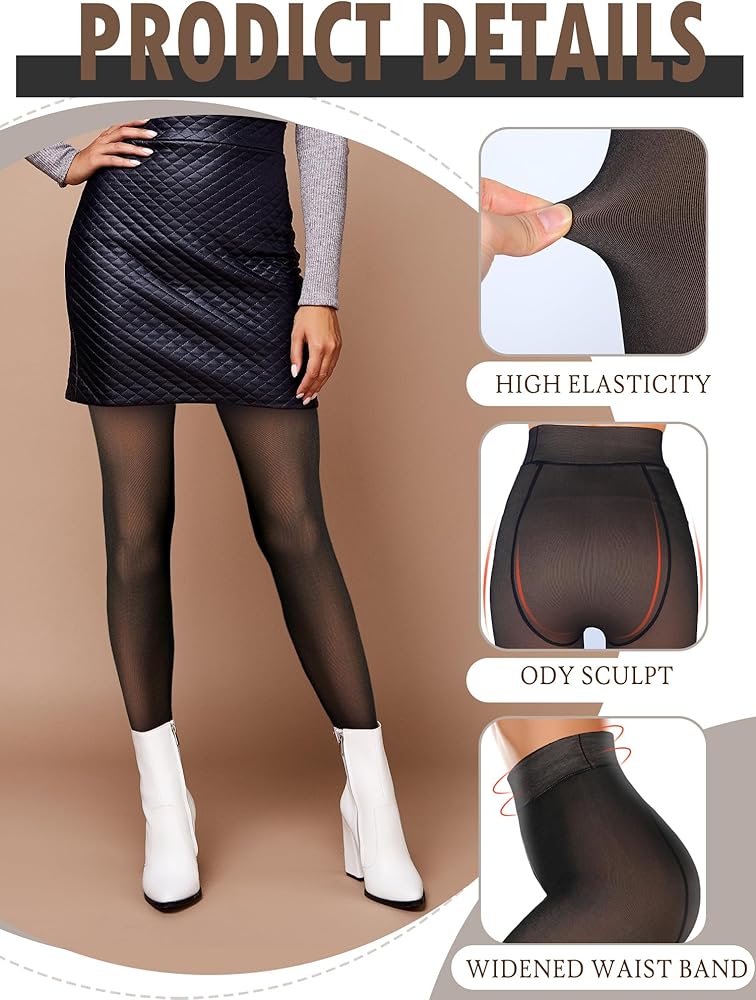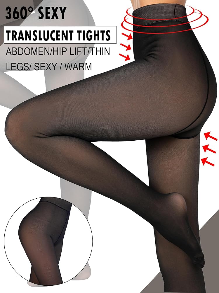Fake Translucent Design: our fleece pantyhose for women features the fake translucent design, which looks like that your own legs are smooth and shiny, making your legs look more attractive; Comfortable and flexible high waist design helps control top tummy, creates a slimmer look, and holds tights in place with enough stretch to keep your legs looking slim