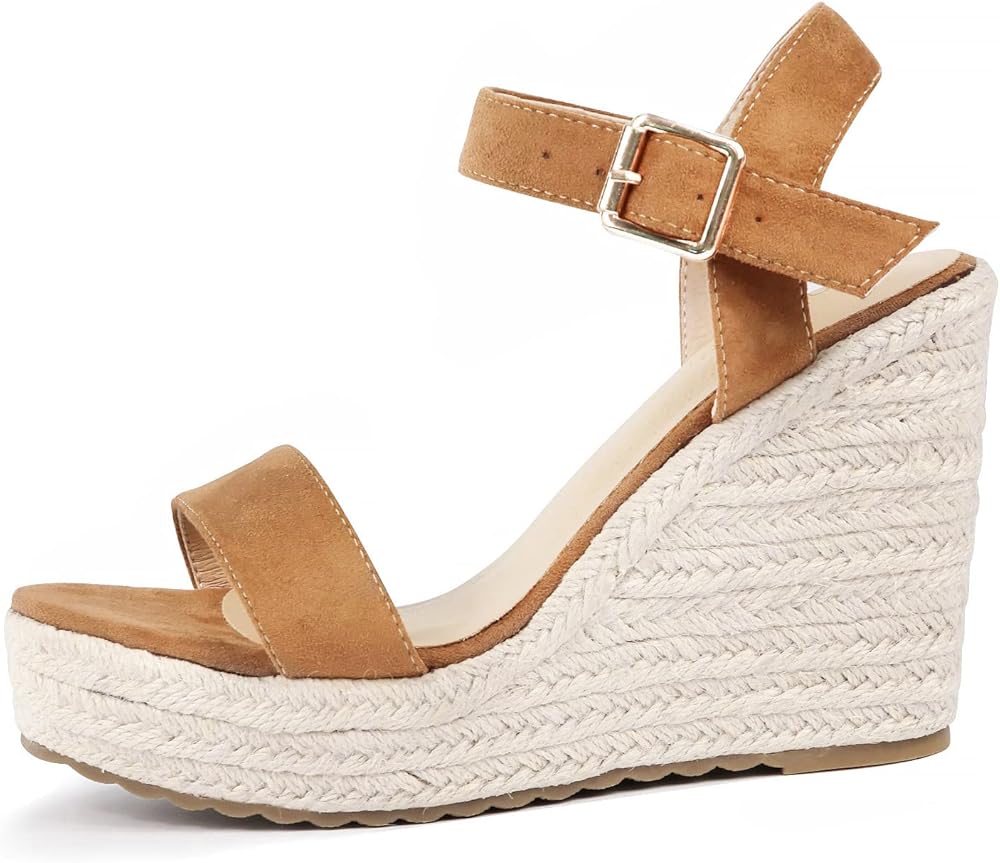 【Newest Wedge Sandals for Women】♥ Upper Material: Suede ♥ Sole Material: Rubber ♥ Toe Style: Open ♥ Heel Height: 3.9 in/10 cm ♥ Sole Height: 1.18 in/3 cm ♥ Closure Type: Buckle ♥ Shoe Width: Medium ♥ Footbed: Comfort ♥ Style: Casual, Classic