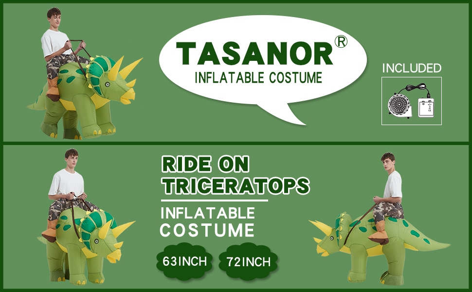 【Product Components】Package contains Instruction Sheet, Inflatable Triceratops Suit and Air Pump. Air Pump Requires Portable Power Bank or 4 AA Batteries. (Batteries Not Included)