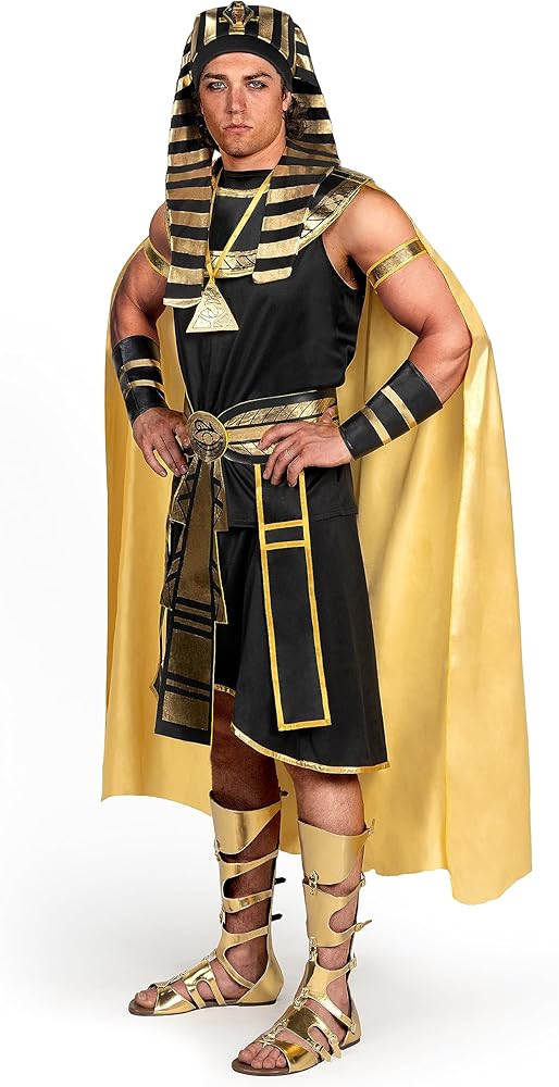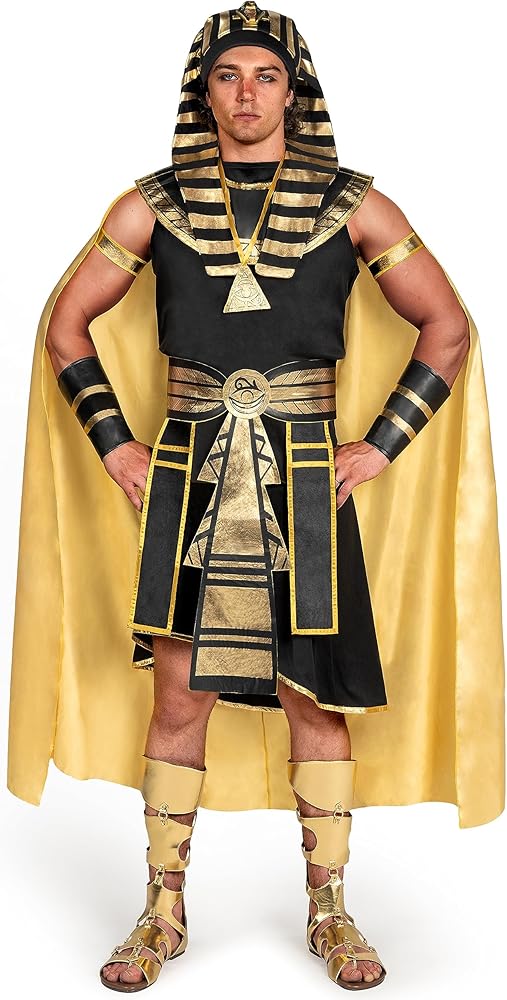Sizes & Perfect Fit: This Pharaoh Costume is available in medium, large, and X-large sizes, which can provide a perfect fit for adult men of various sizes. Dressing up as a majestic Egyptian Pharaoh with our black and gold costume set, you can embrace the spirit of ancient Egypt and rule the party