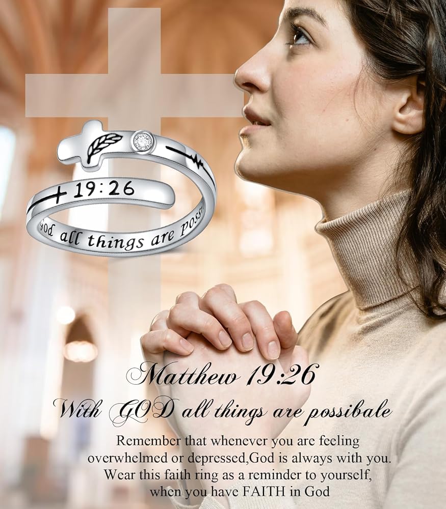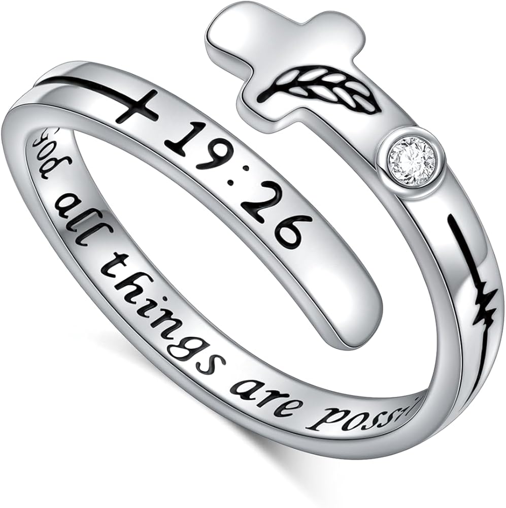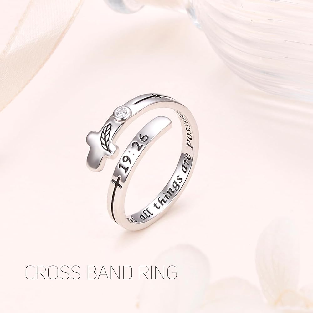 Ladytree Feather Angel Wings Adjustable Memorial Dainty Sterling Silver Open Thumb Ring for Women Men Loss of Mom Dad Daughter Loved Ones Mother's Day Sympathy Memory Jewelry Gifts