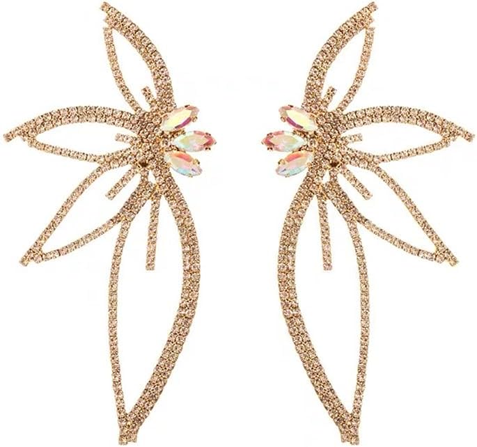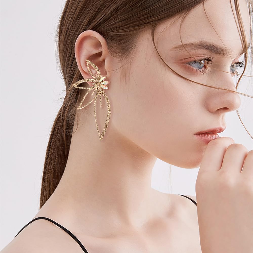 Butterfly shaped earrings are inlaid with shiny crystals. They are very fashionable and shiny. The earrings with exquisite design can highlight your unique taste. Suitable for women of any age.