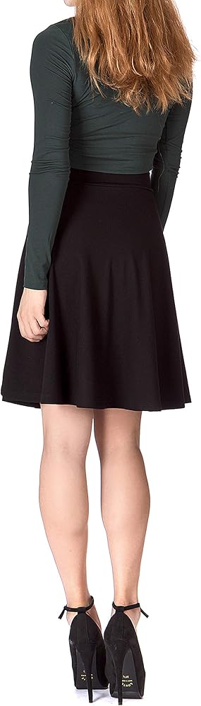 Super-versatile flared knee length skirt in beautiful mood: With the neat design and plain pattern, the skirt can matched with any outfits. The high waist and A-line silhouette give the fit to look slimmer and the moderate knee length gives a feminine and formal mood.