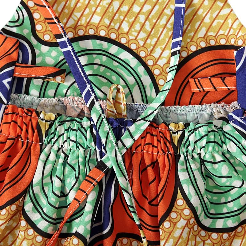 Noubeau Kids Toddler Girls African Dashiki Dress Little Girls Backless Halter Dress Ethnic Bohemia Style Summer Clothes