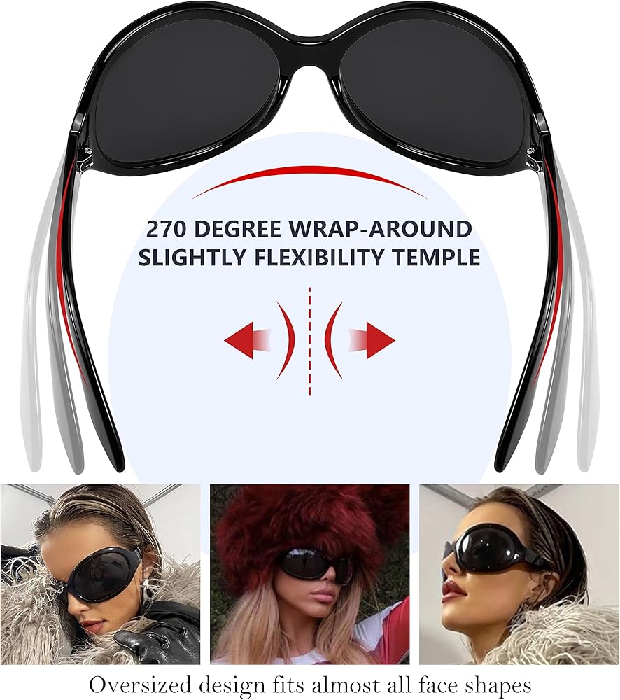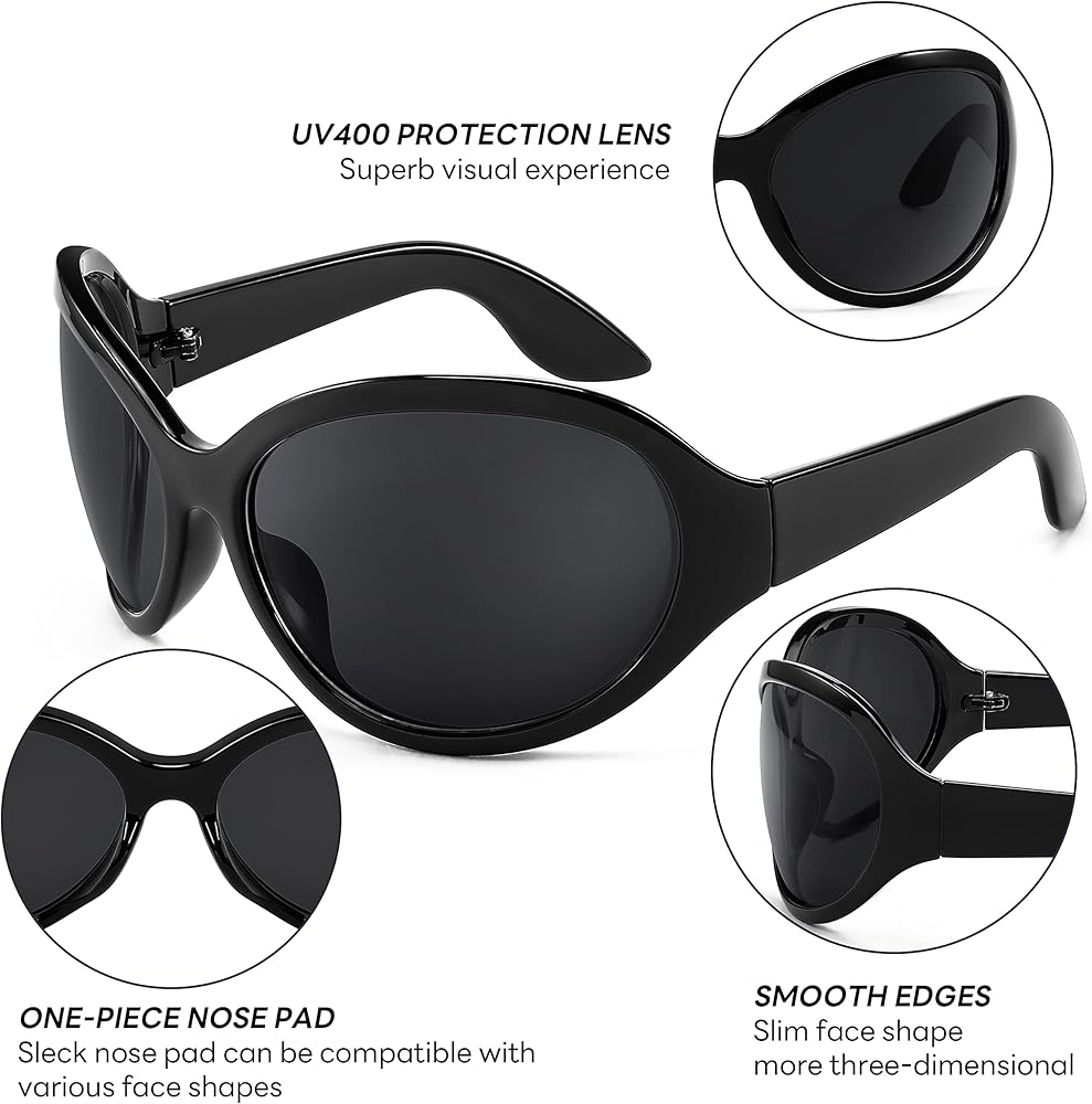 【Super Vision】: These oval sunglasses provide great coverage around the eyes. Oval sunglasses block the wind well These glasses also have aerodynamic properties and are much more curved than regular sunglasses. With these large lenses, you won't notice the frame in your field of vision when you look at something.