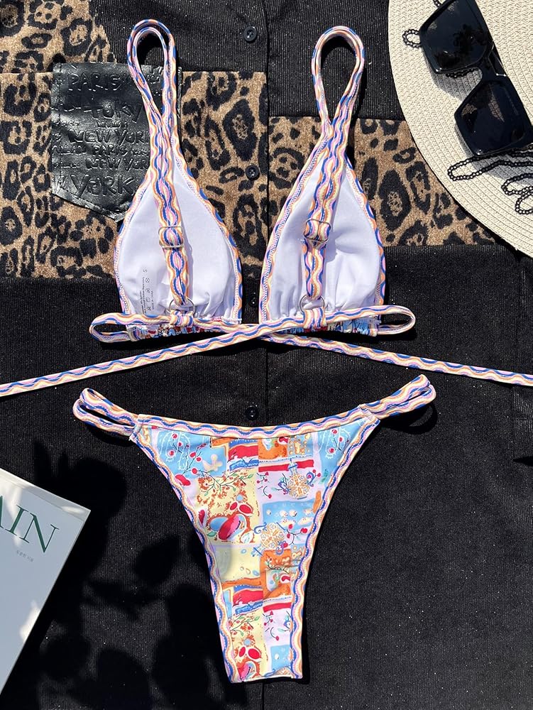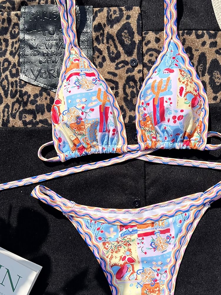 - Features: Micro, halter, triangle, thong, tie side, plain