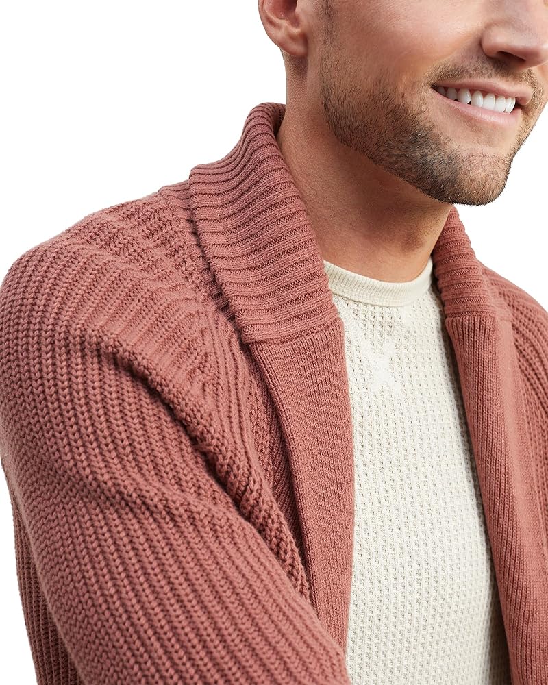 This shawl collar cardigan is its own mood. Chunky knit, relaxed fit, and now pockets, too.