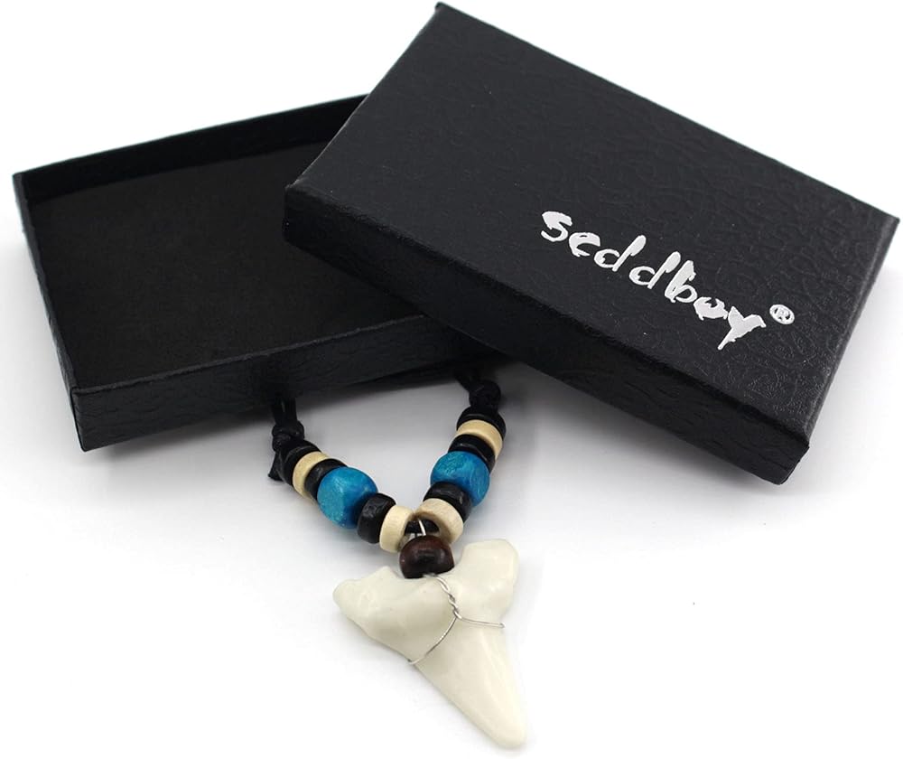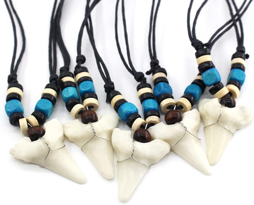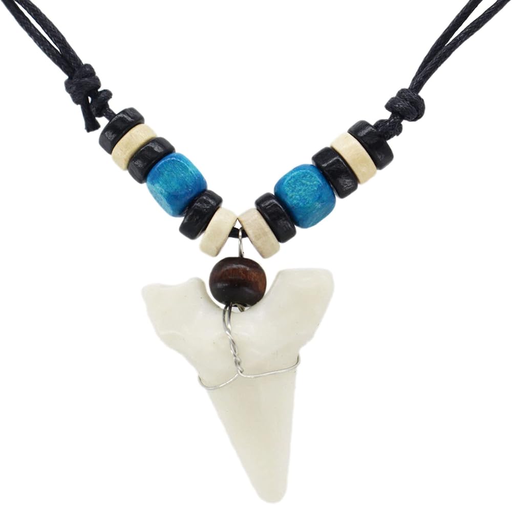 Scddboy Shark Tooth Necklace for Mens Beach Surfer Hawaiian Adjustable Cord Resin Necklace