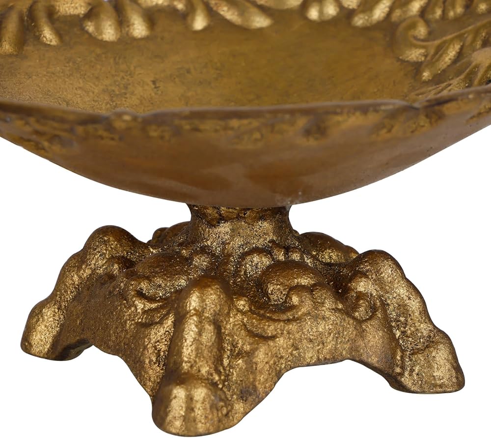 NIKKY HOME Rustic Jewelry Tray Decorative Border Trinket Dish Vintage Ring Holder Bowl for Bracelet Earring Necklace Organizer Metal Display Plate Handmade Gift for Women Girl, Gold