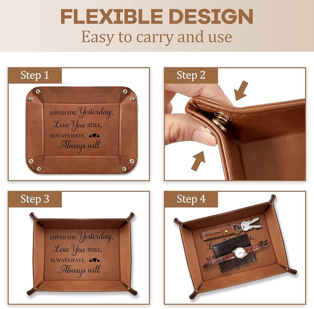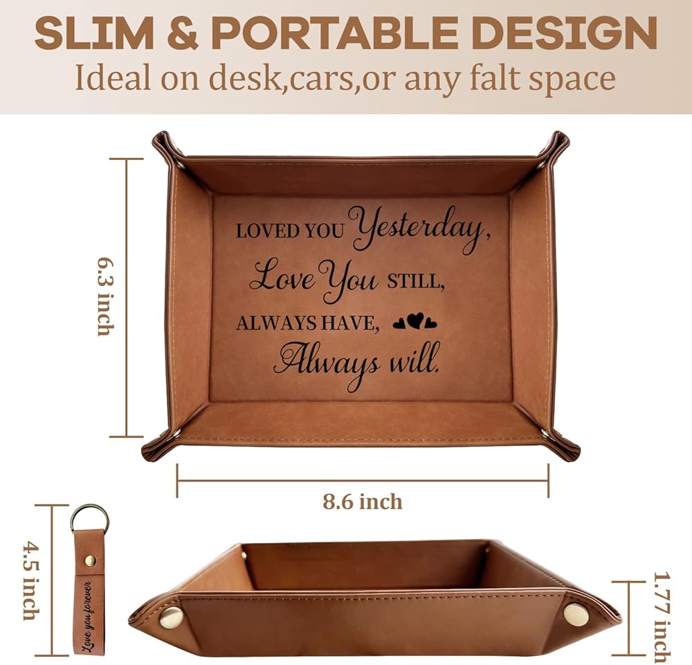 3. Stay organized and fashionable with our leather valet tray, crafted from high-quality materials.