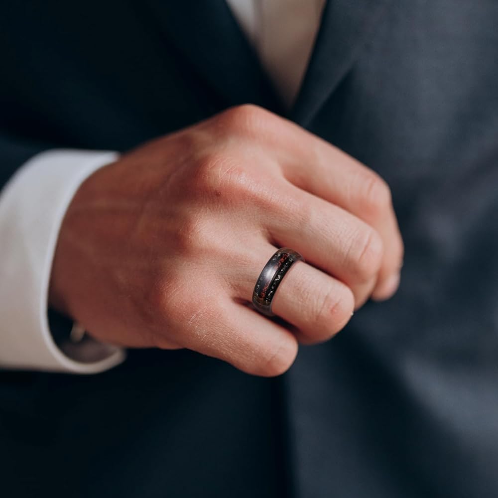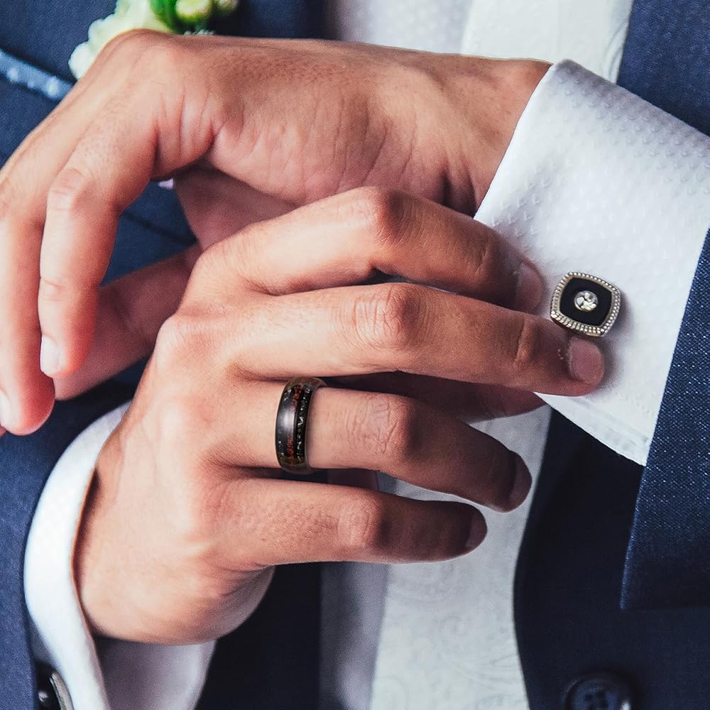 ✔️QUALITY AND BEAUTY: Genuine Tungsten Carbide makes the ring durable, weighty, anti-scratch and hypoallergenic