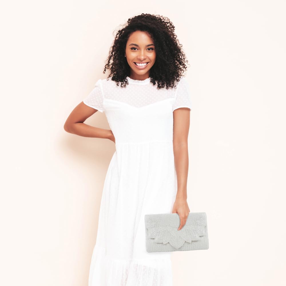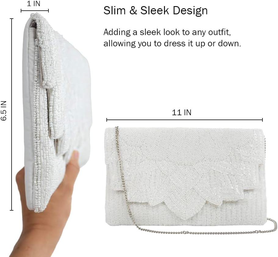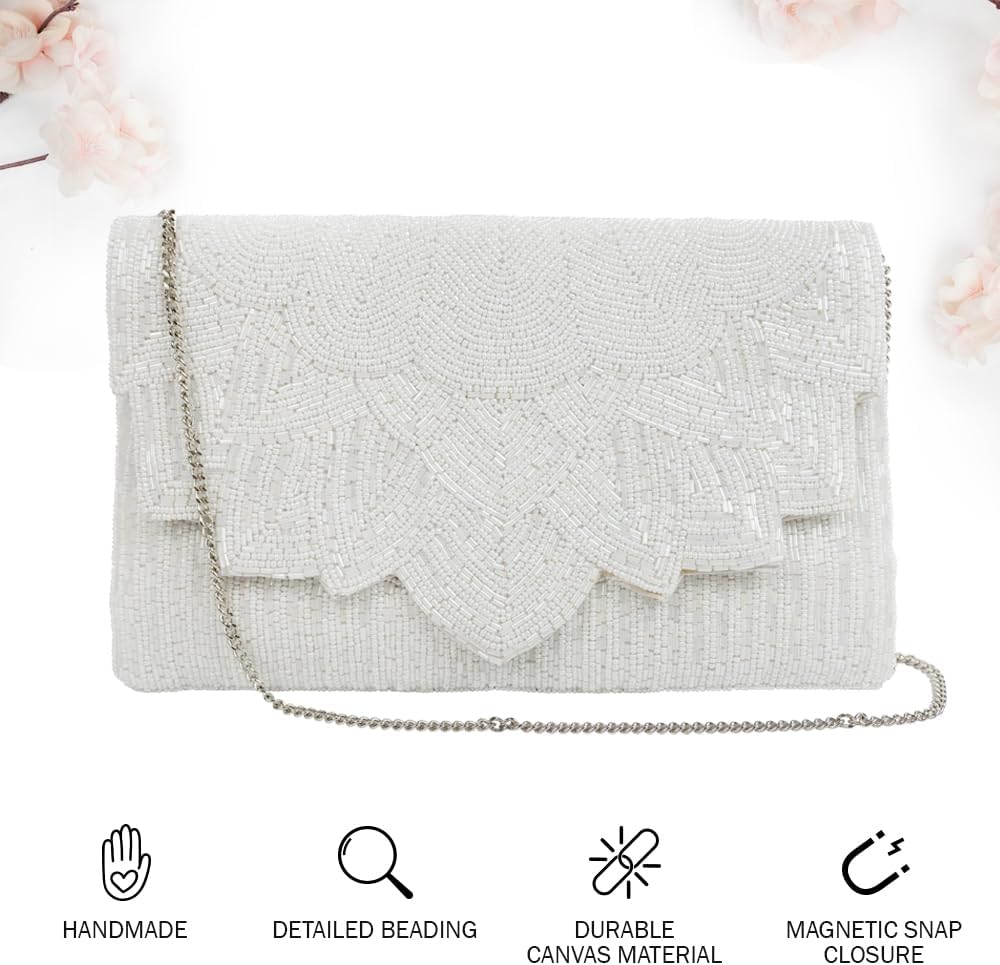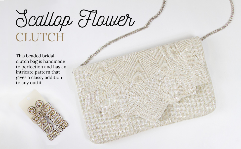 Evening Bag White Flower Scallop Pearl Clutch Bag, Bride Clutch, Hand Beaded Bride Purse, White Purses for Women, Gifts for Engagement, Bridal Shower, Gifts, Bride Purse for Bachelorette Party