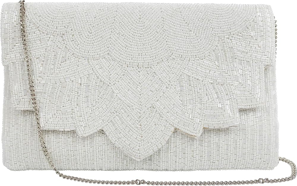 This white clutch purse will be perfect for an evening out with the girls! This beaded purse is handmade to perfection and has an intricate bead pattern that gives an elegant and classy addition to any outfit.
