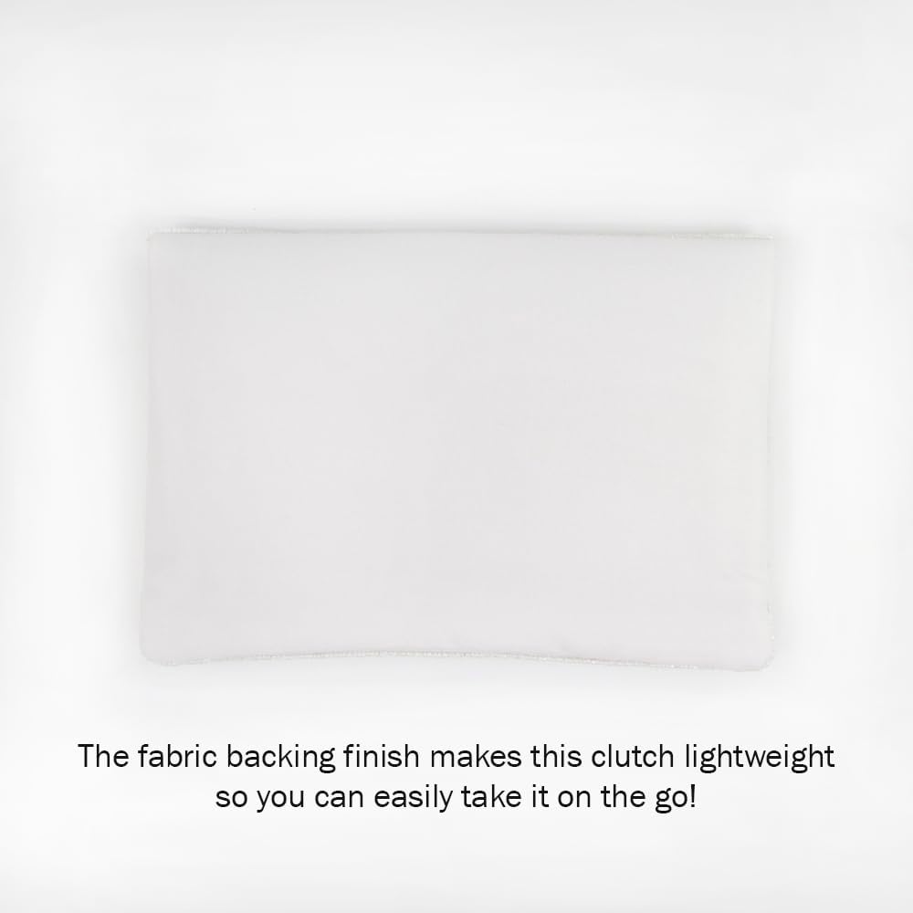 This clutch purse is 10.25” x 7” x 1”, has an inner slip pocket, and can carry all your essentials throughout the exciting occasion with ease.