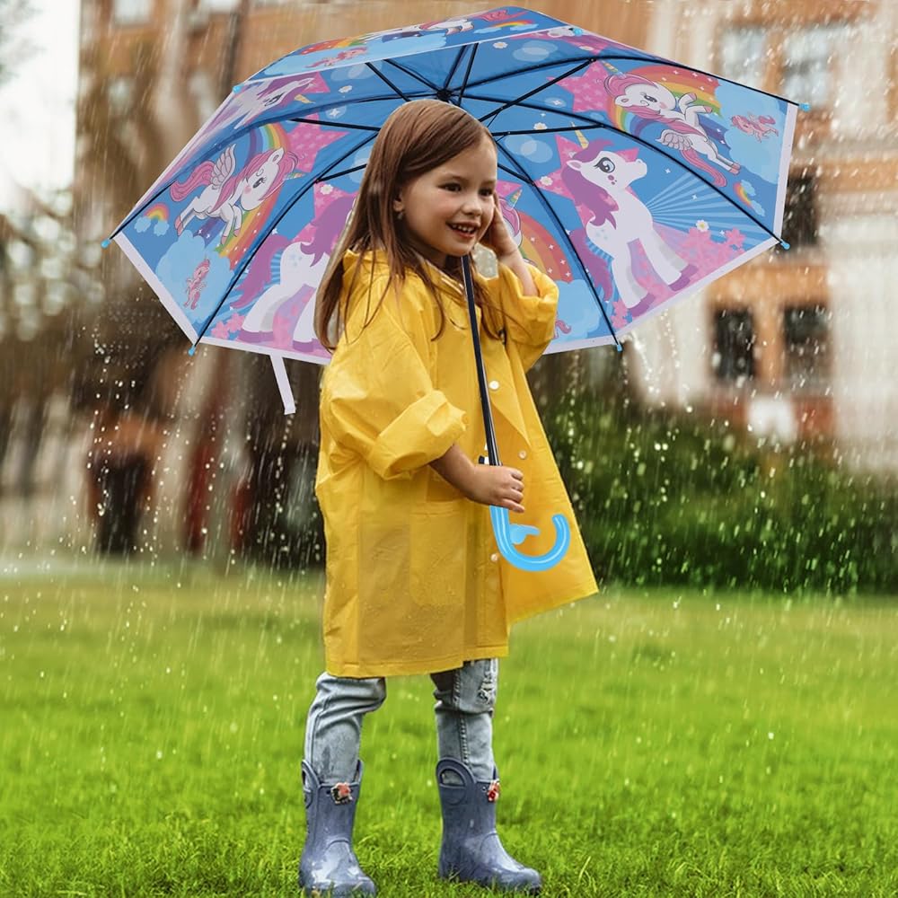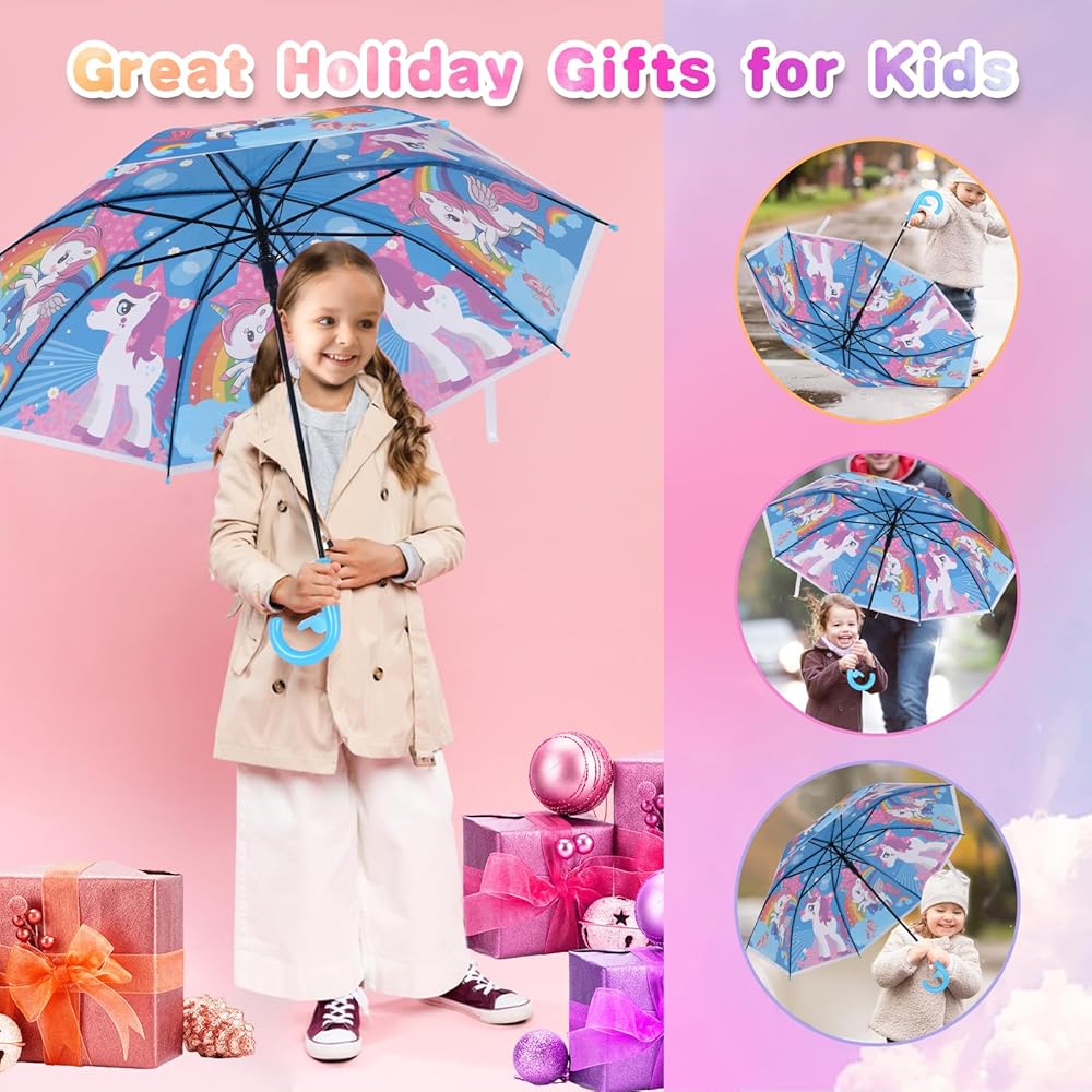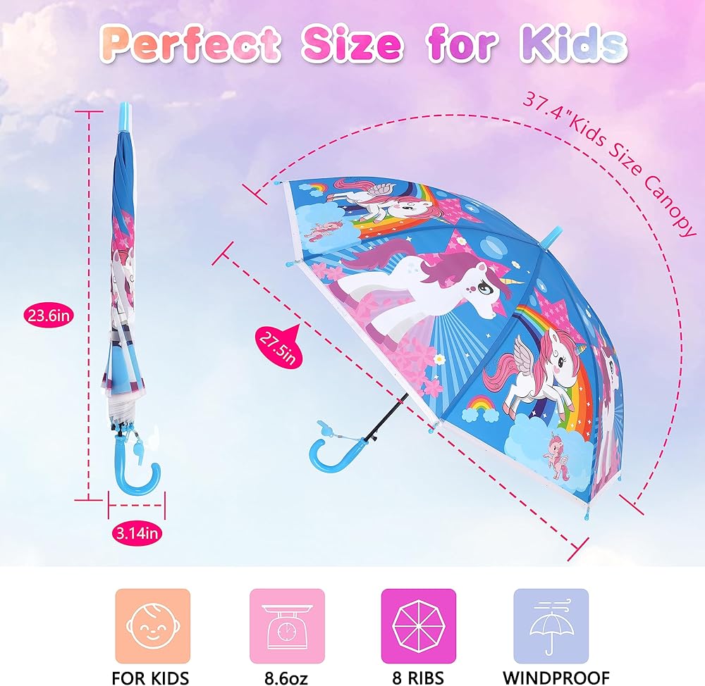 CLEAR UMBRELLA - The clear umbrella canopy is made of TPU, completely see-through which allows your girls and boys to see the front clearly when walking in the rain.