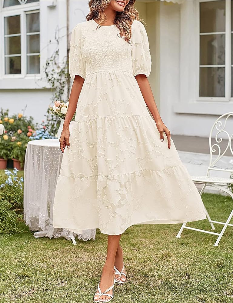 ❀【Matching Suggestions】: Pair our A Line Smocked Wedding Party Midi Dresses with sandals, slippers or high heels for casual or feminine look. Even great to wear in the office, under a blazer or with boots.