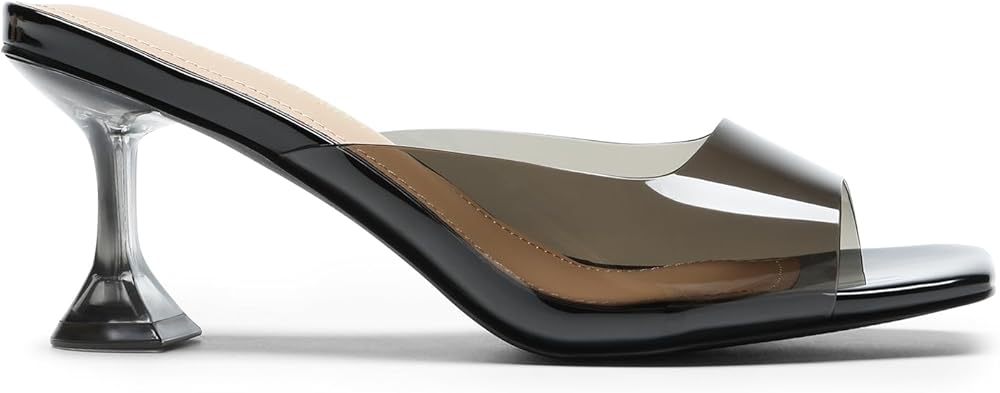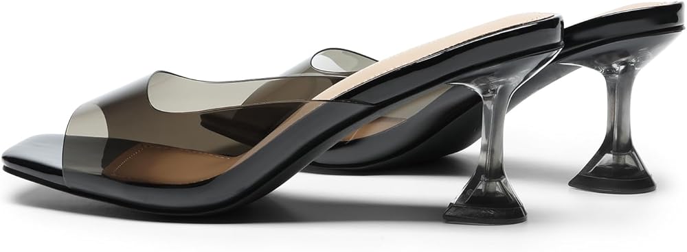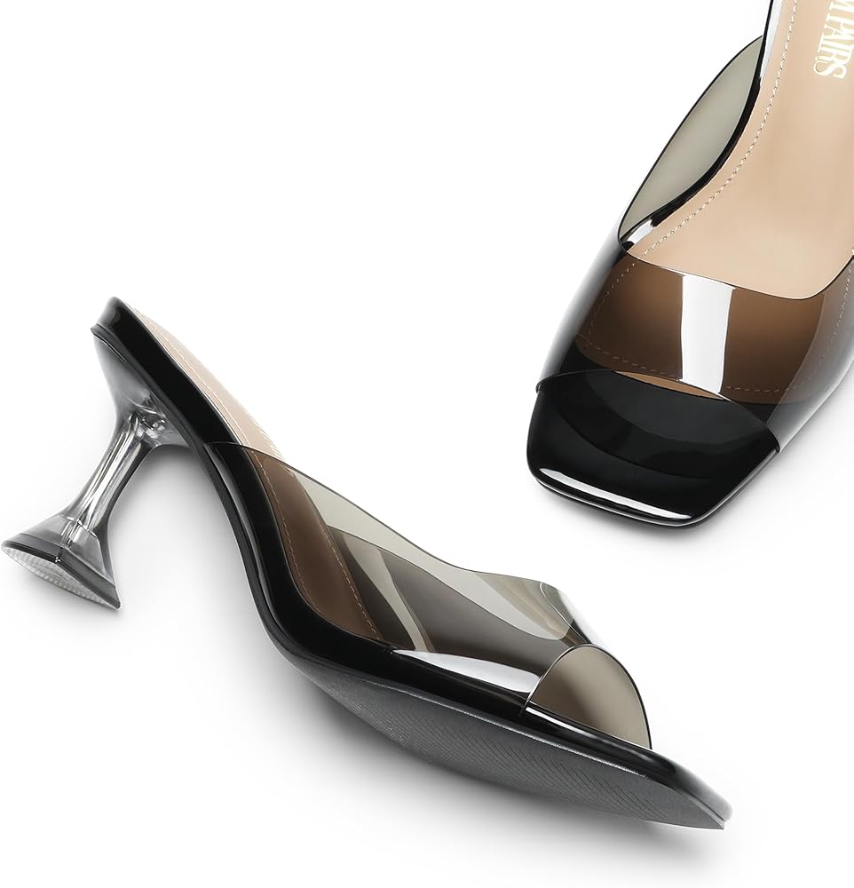 DREAM PAIRS Women’s Clear Heels Square Toe High Stiletto Mules Slip on Wedding Dress Heel Sandals