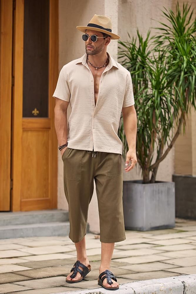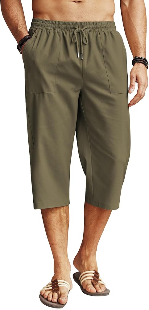 【Occasion】 Linen capris shorts for men are great for daily casual wear, lounge, vacation, beach, yoga, hippie, outdoor activities, parties and so on. Suitable for spring, summer and fall.