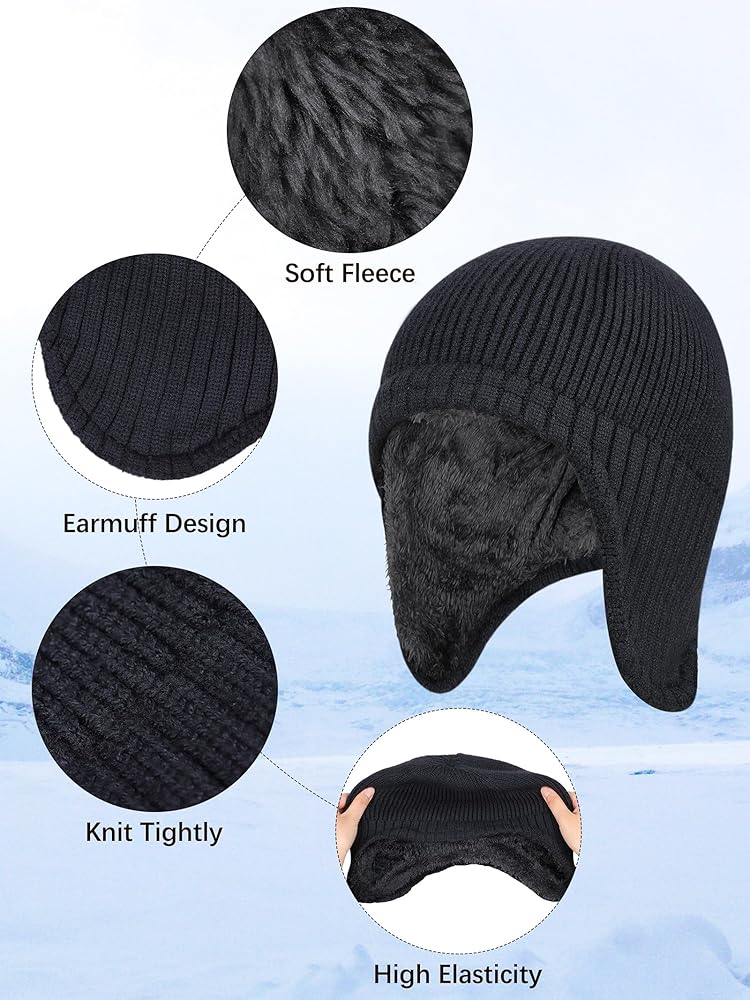 Extended earmuff design: these fleece lined earflap hats are designed with extended and thickened earmuffs, which can keep your ears warm; what's more, these knit beanie hats can protect against the cold wind and allow you to play freely in the cold winter