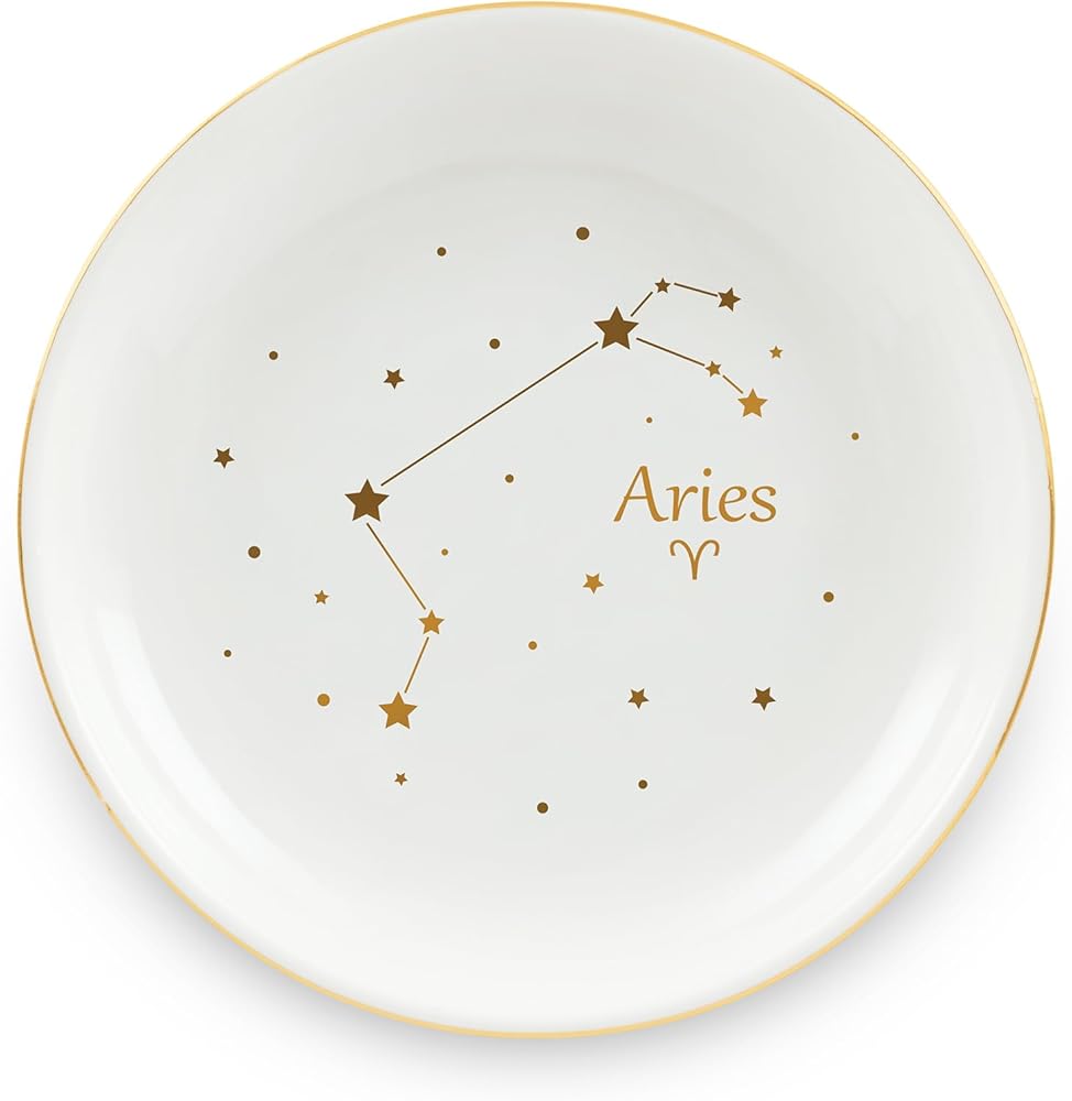 Homlouue Aries Gifts for Women, Zodiac Jewelry Tray, Ceramic Astrology Sign Ring Dish, Aries Constellation Ring Trinket Tray, March April Birthday Gifts for Women