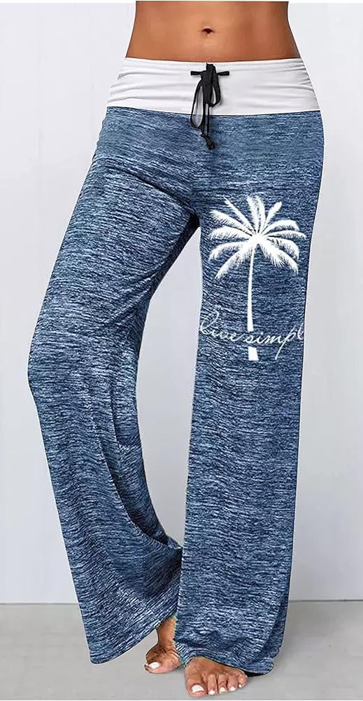 سروال يوجا نسائي واسع الساق لايف بسيط مصنوع من شجرة جوز الهند مريح برباط سروال Palazzo Lounge مع جيوب