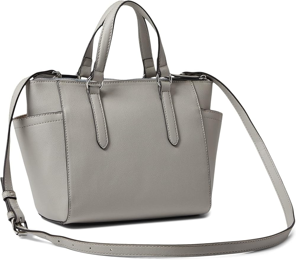 Get a practical yet sophisticated style of carrying your essentials by choosing the Nine West Cedar Satchel Bag which has a versatile appeal and can be paired with any outfit. PVC construction. Zippered closure. One zippered interior pocket and one slip pocket. Two exterior slip pockets. Dual top handles. One detachable and adjustable shoulder strap. Pin-mounted brand name. Leather dangle included. Polyester lining.