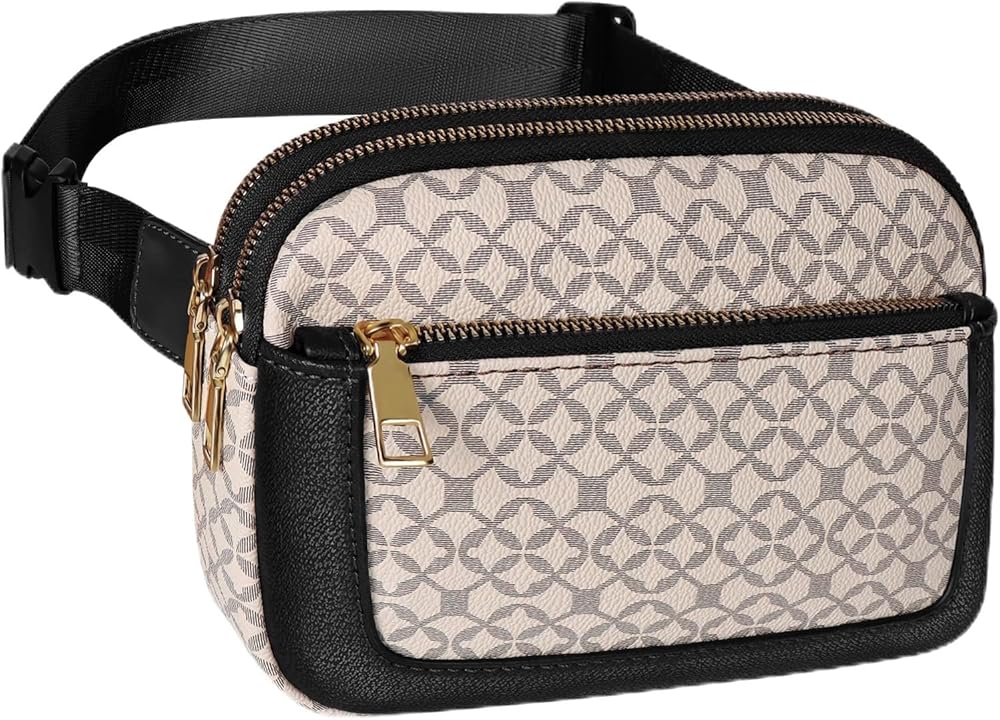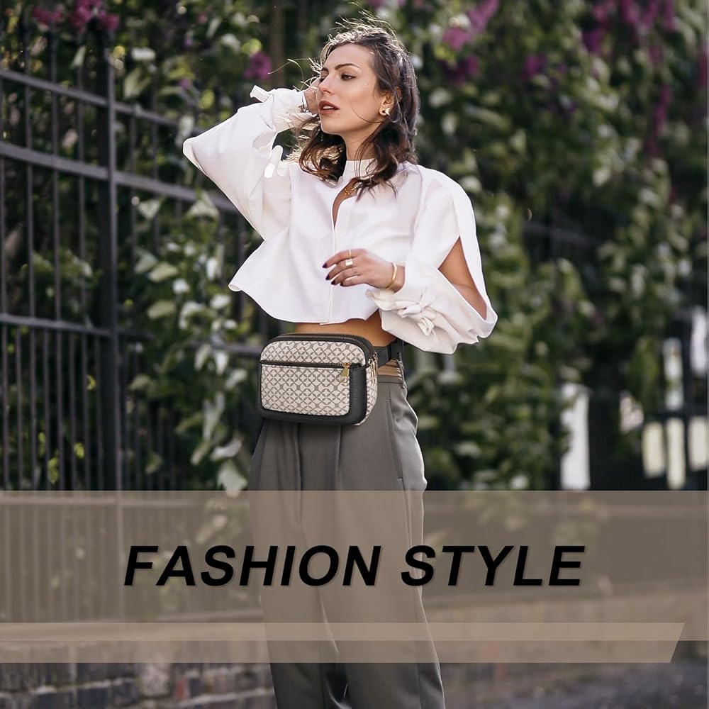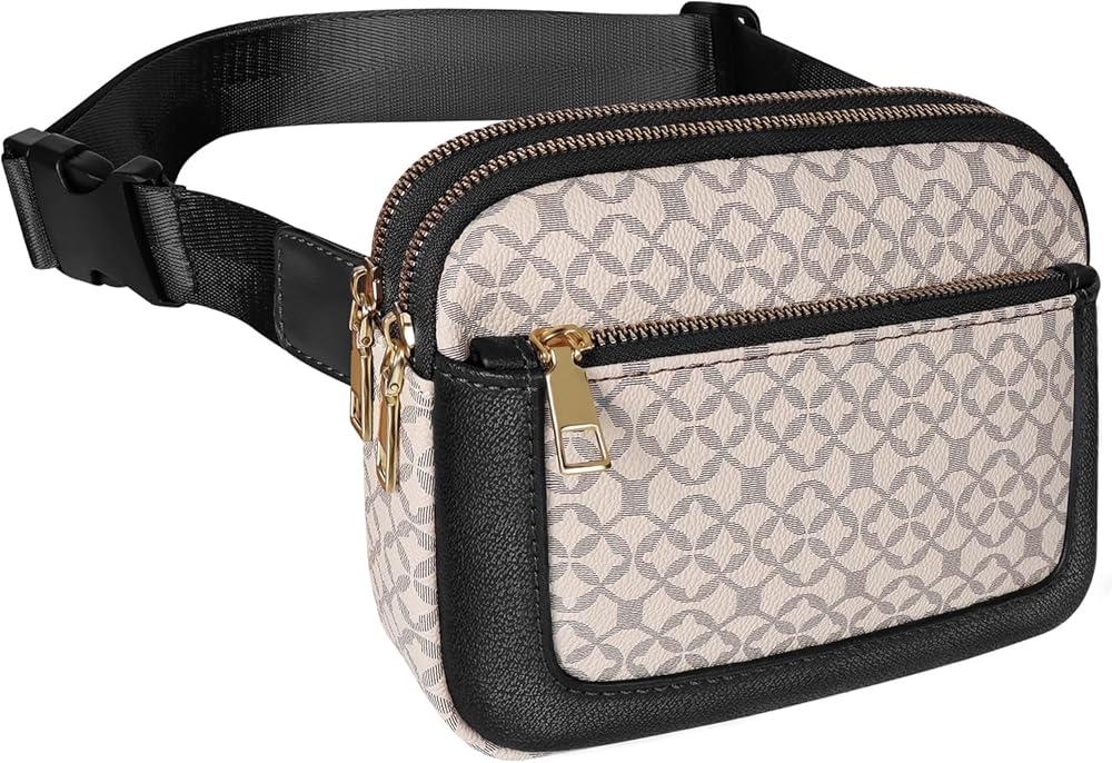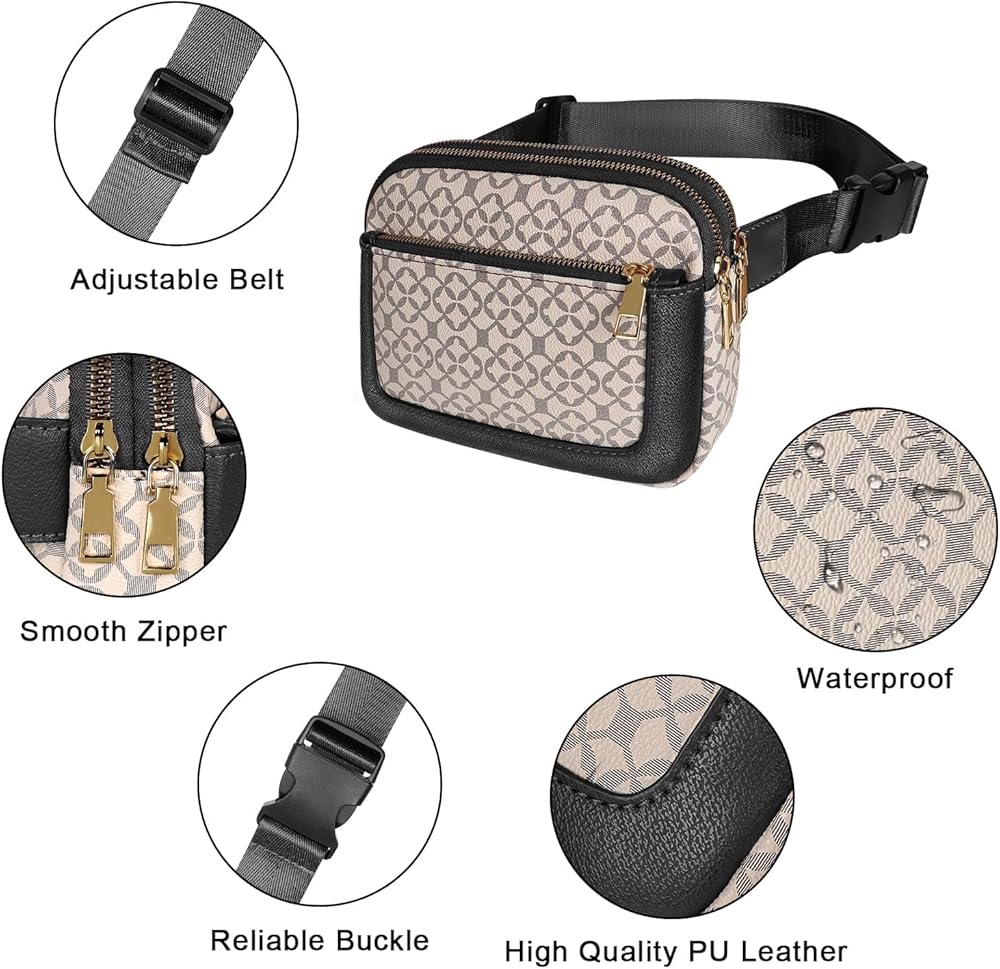 Geestock Fanny Packs for Women, Trendy Vegan Leather Belt Bag, Waterproof Everywhere Crossbody Waist Bag, with Adjustable Strap for Outdoors/Travel/Running/Sports, Printing & Black