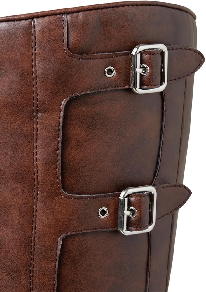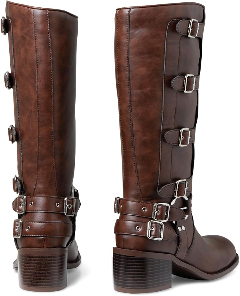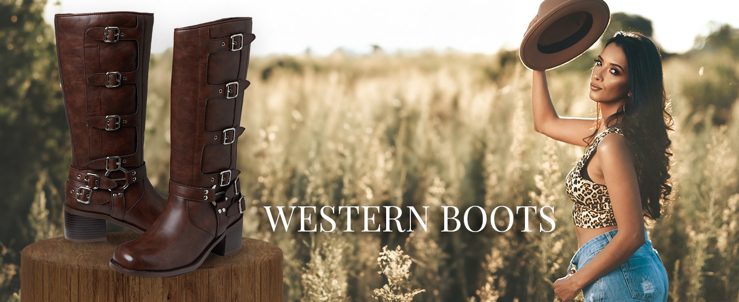 [Design]Classic western boot design with adjustable metal buckles. The boots have a refined alignment and a stiff fit,you won't feel any discomfort when walking in them.