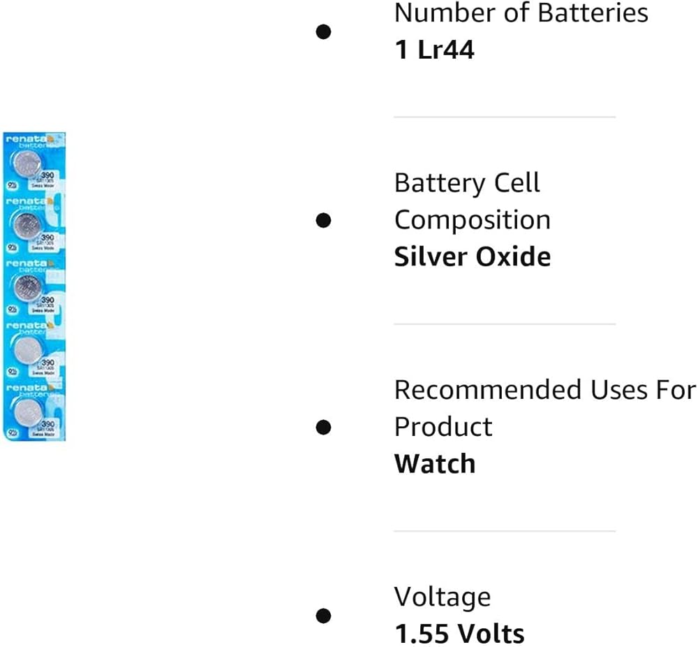 Renata 390 SR1130SW Batteries - 1.55V Silver Oxide 390 Watch Battery (2 Count)