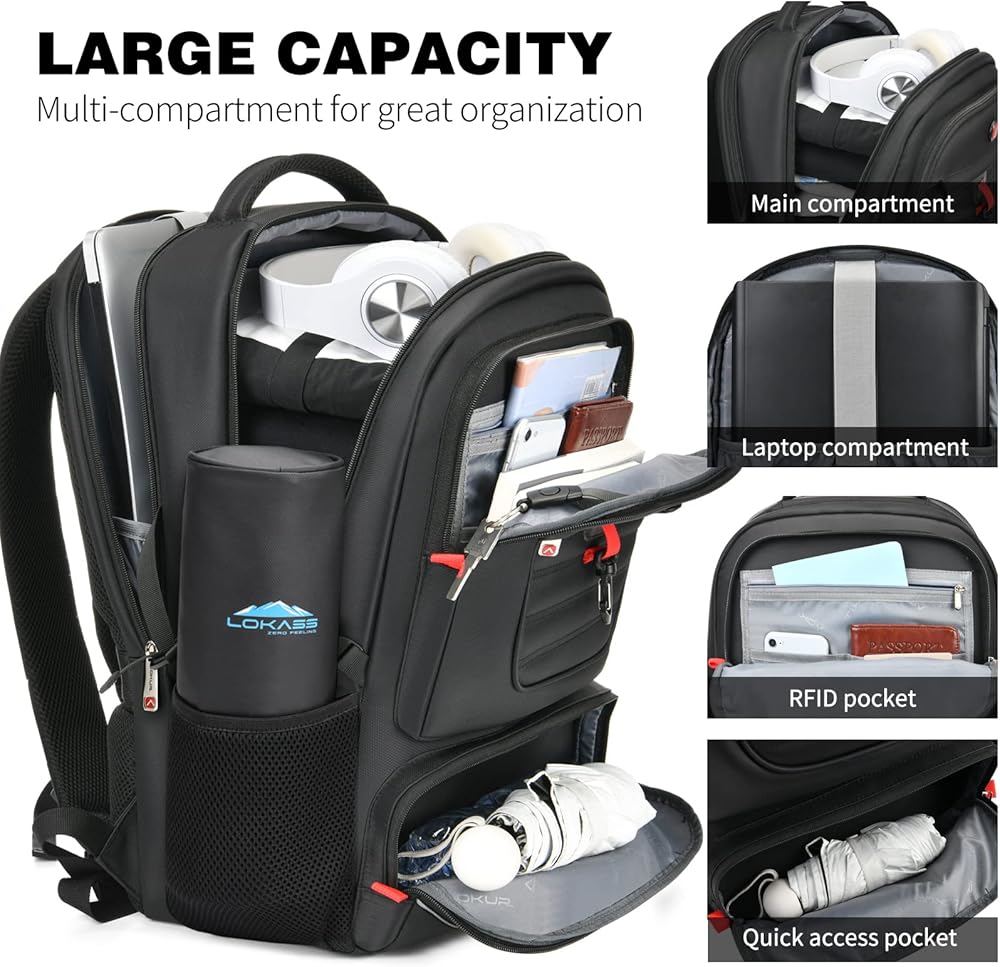 LOKASS 17 Inch Laptop Travel Backpack for Men,Waterproof,Heavy Duty, Anti-Theft Large Mens Backpacks and Perfect for Travel,Work, Business, College - Bookbag and Mochila de Viaje up to 17.3