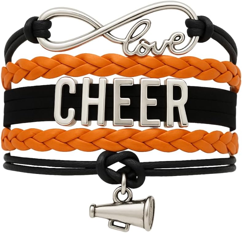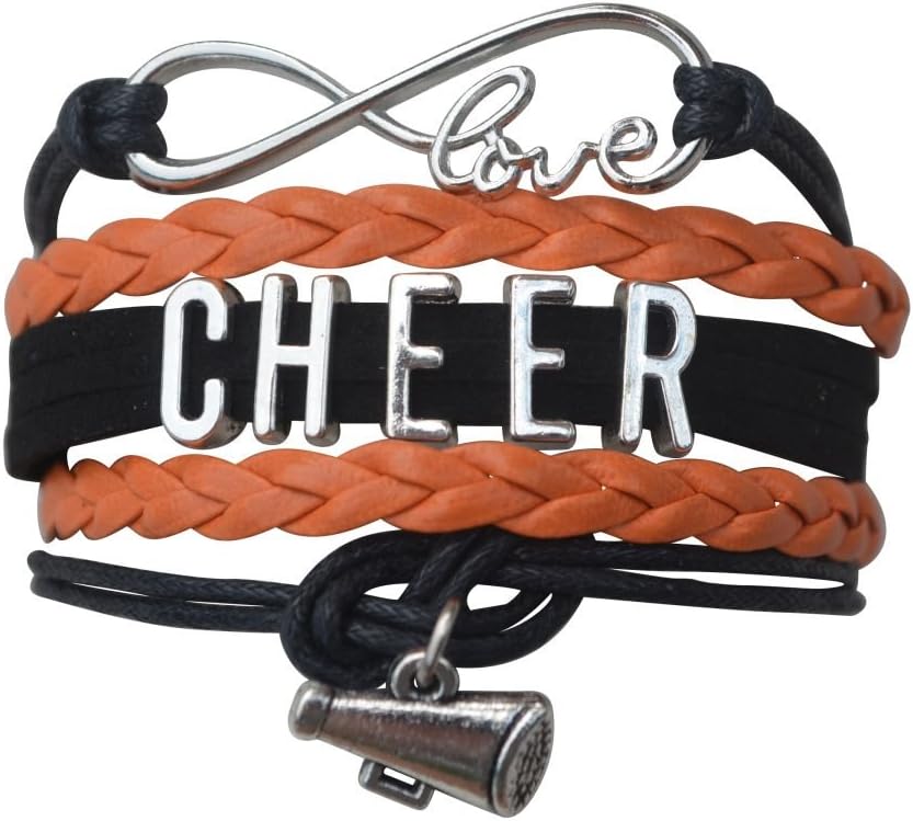 * CHARM BRACELET FOR CHEERLEADING: This Cheer Infinity Bracelet is Adjustable from 5 inches to 8 inches, this sporty black and silver bracelet features a sturdy adjustable clasp to hold it in place and easy to get on and off. *will fit most kids, teen and adult wrists.