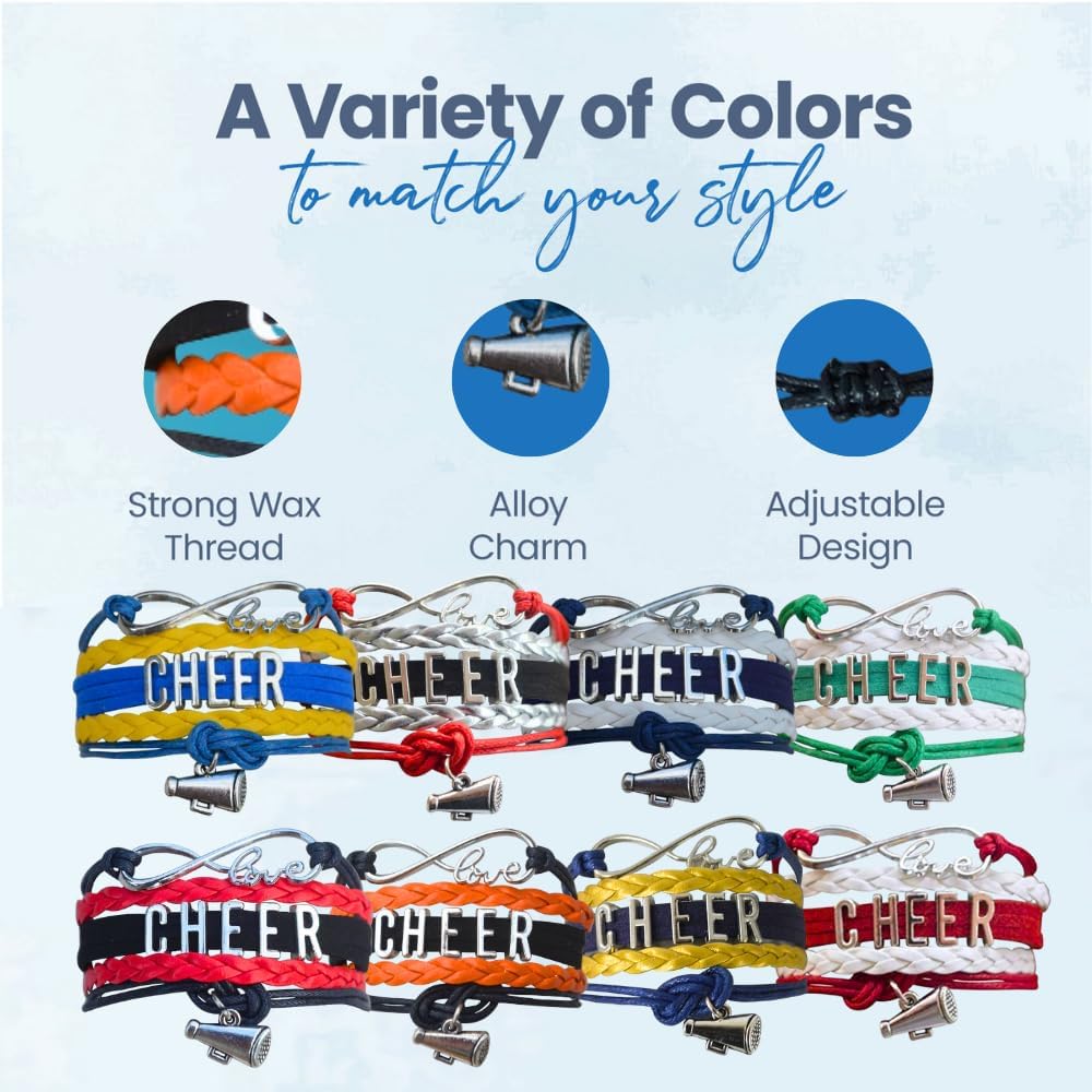 * CHEER GIFT- Looking for an inexpensive cheer gift to show your team spirit? Our Cheer Infinity bracelets come in over 20 team colors to make the Perfect Gift For Cheerleaders, Cheer Teams & Cheer Coaches for birthday, end of season, competition or just because