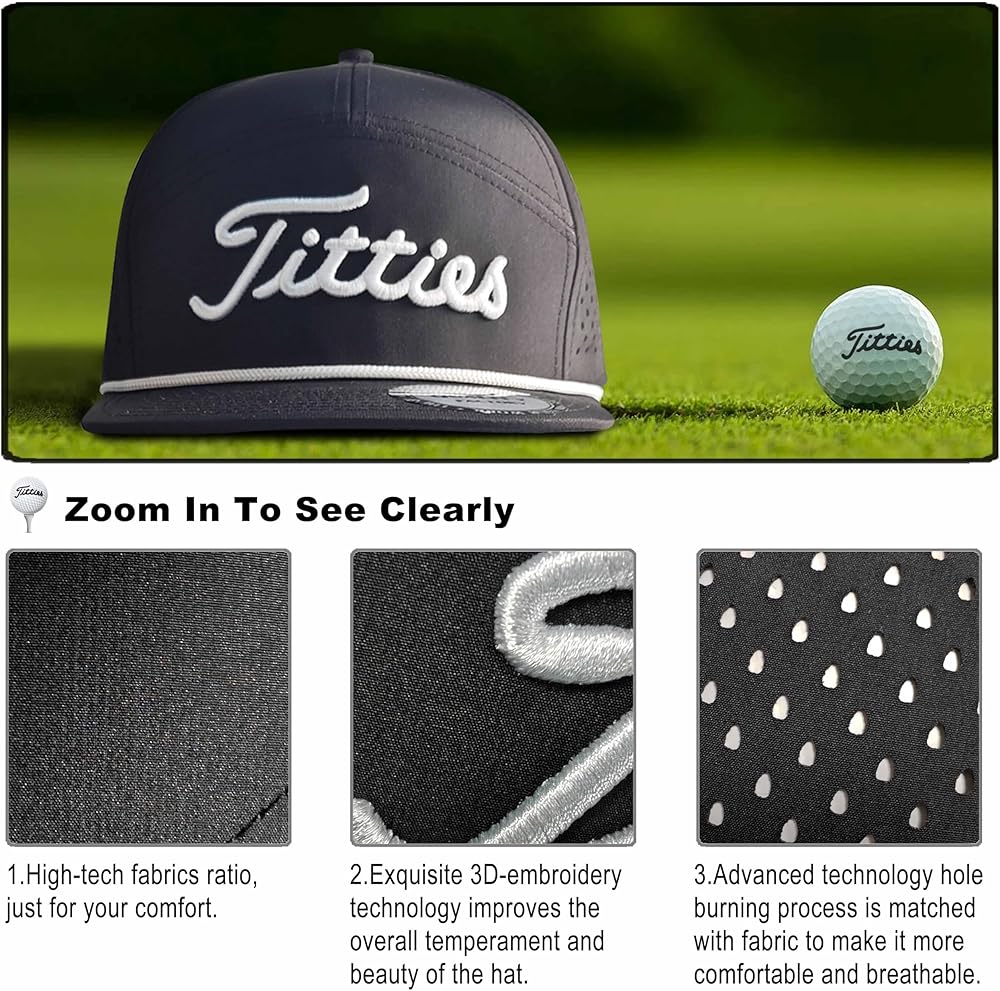 Tittiess Golf Hats Flat Bill for Men Women,Funny Titties Golf Gifts Baseball Cap for Adults Humor