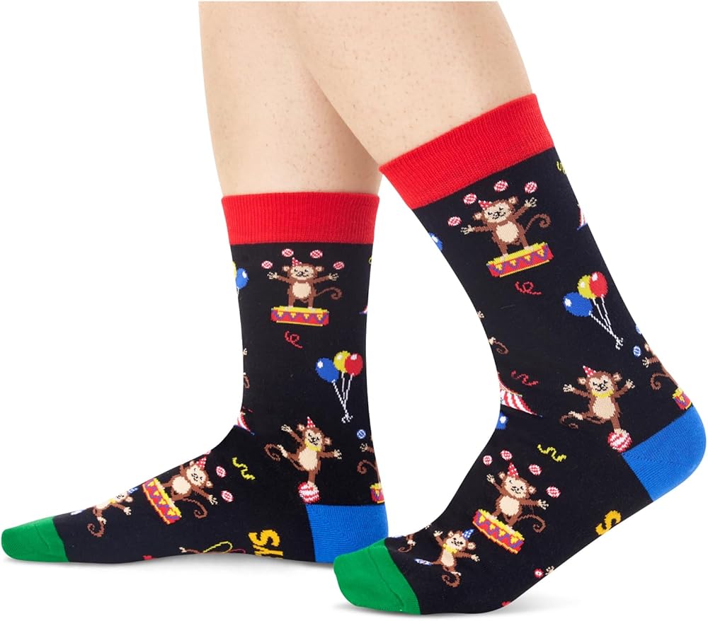 MONKEY GIFTS: Our novelty socks are perfect gifts for monkey Lovers! They make funny gifts for moms and dads on special occasions like Carnivals, Circus events, Birthdays, Mother's Day, Father's Day, Valentine's Day and Christmas.