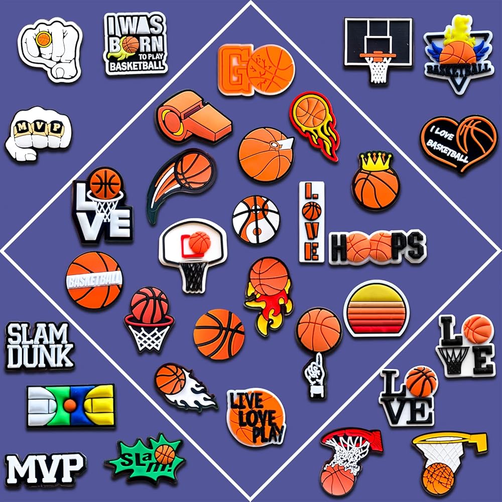 【Cool Charms For Shoes】Each set includes 35pcs basketball charms,different shoes decoration charm shape, make more and better collocations.