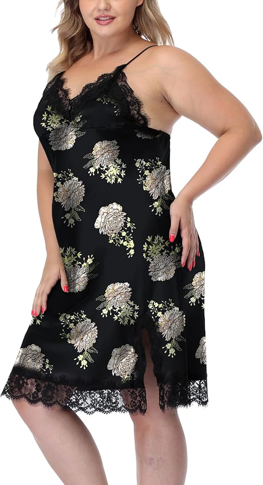 Material: This sexy satin nightie is made of 100% polyester. Plus size satin chemise sleepwear with soft comfortable and silky touch, breathable.