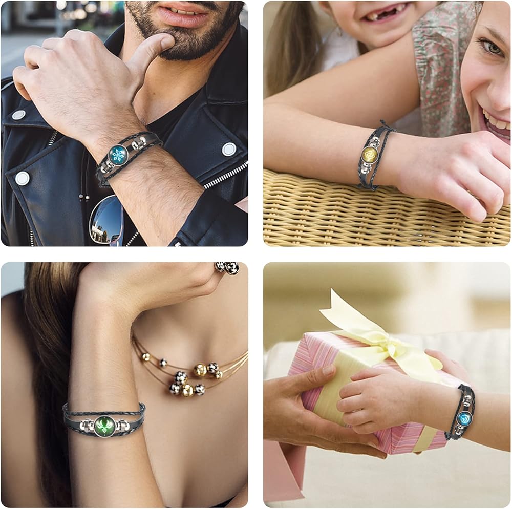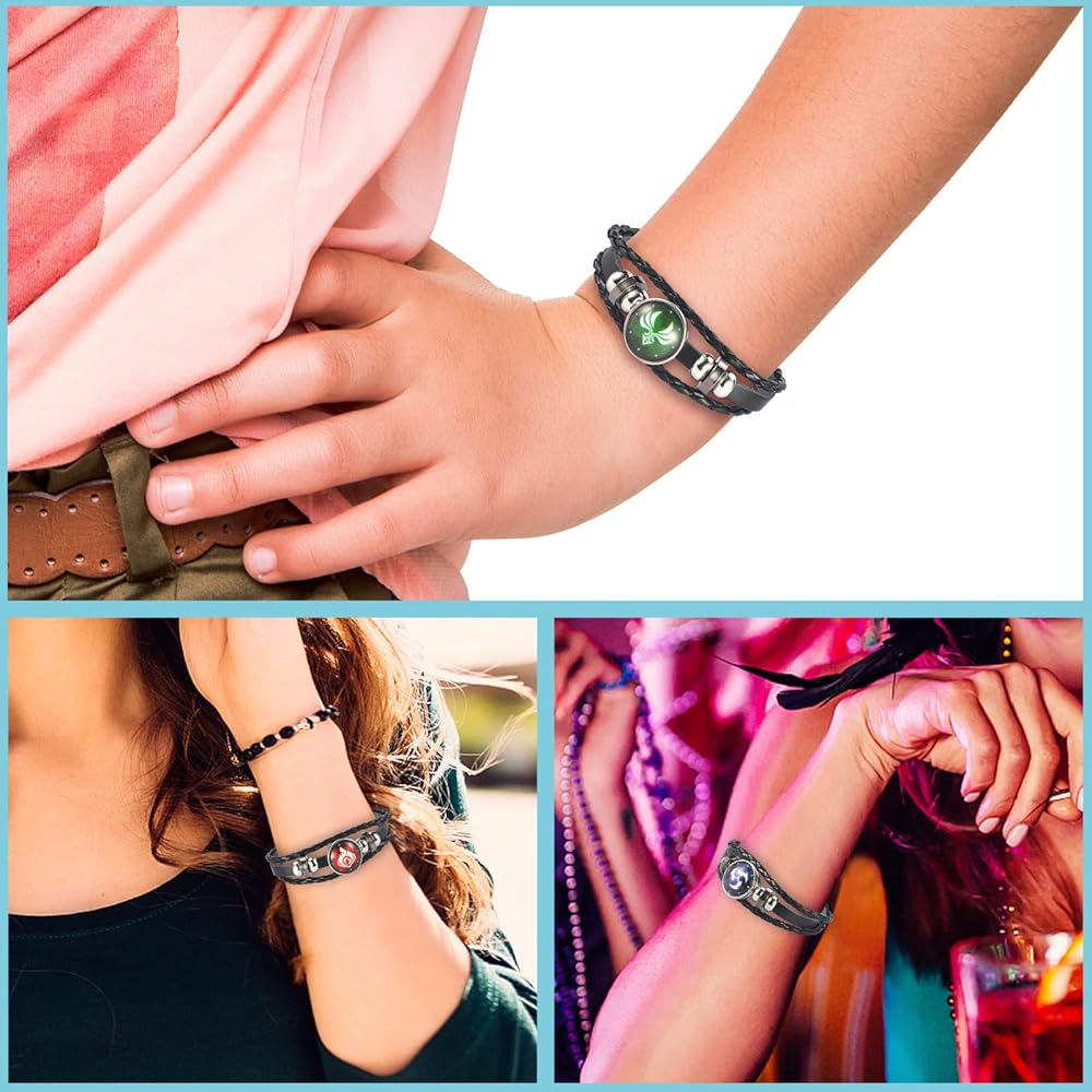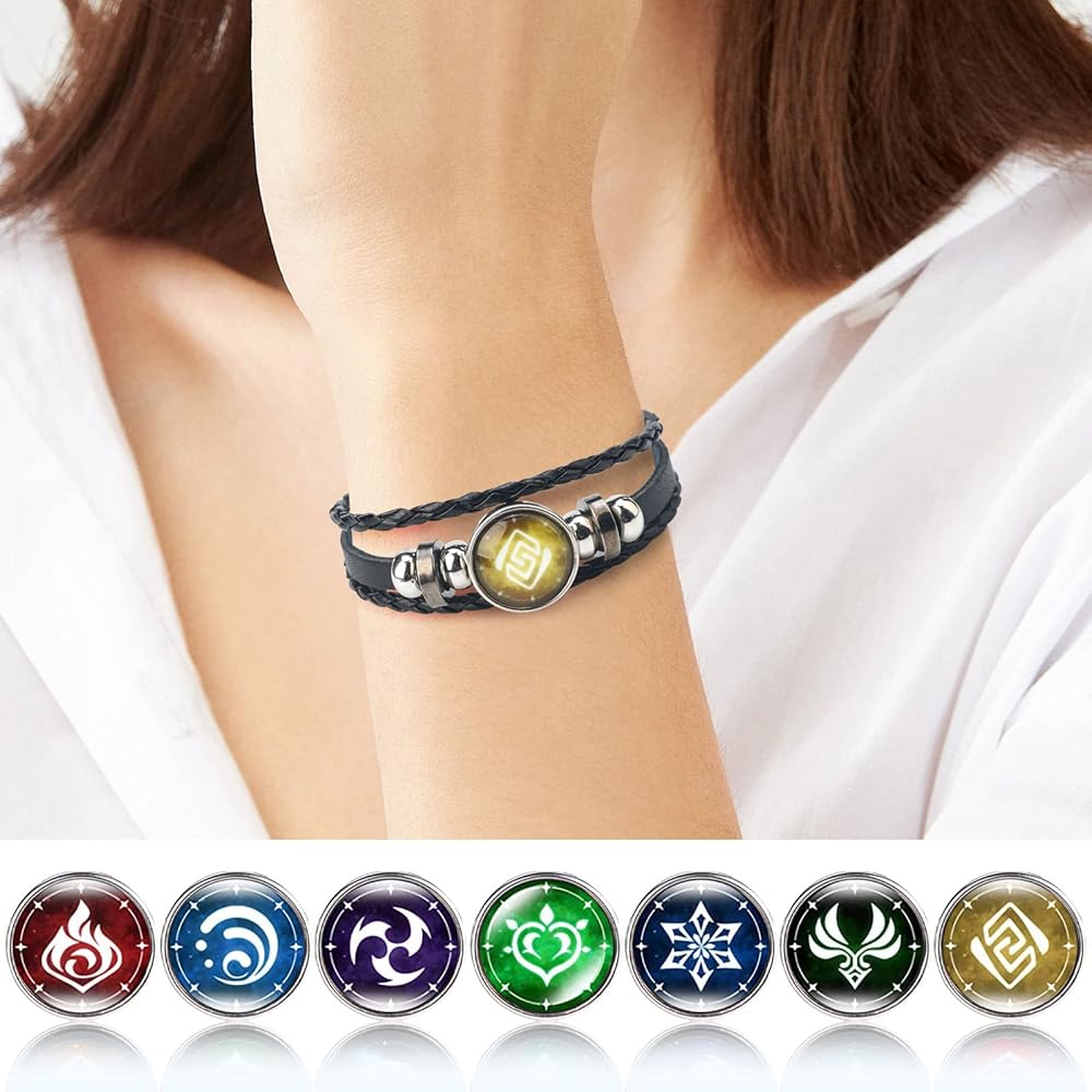 سوار جينشين امباكت من يوتيهد 7 قطع، سوار مضيء انيمي، اساور مضيئة تتوهج في الظلام، سوار جوهرة عين الله من النار والجليد والرياح والعشب والصخور والرعد والماء، 9.5 انش،