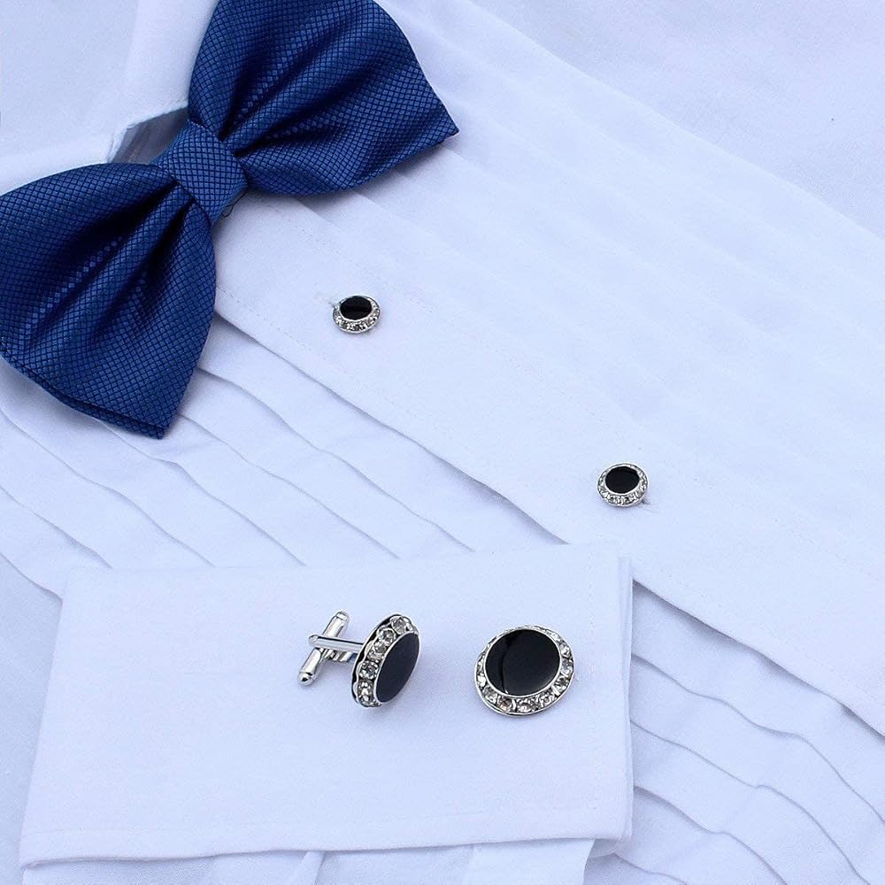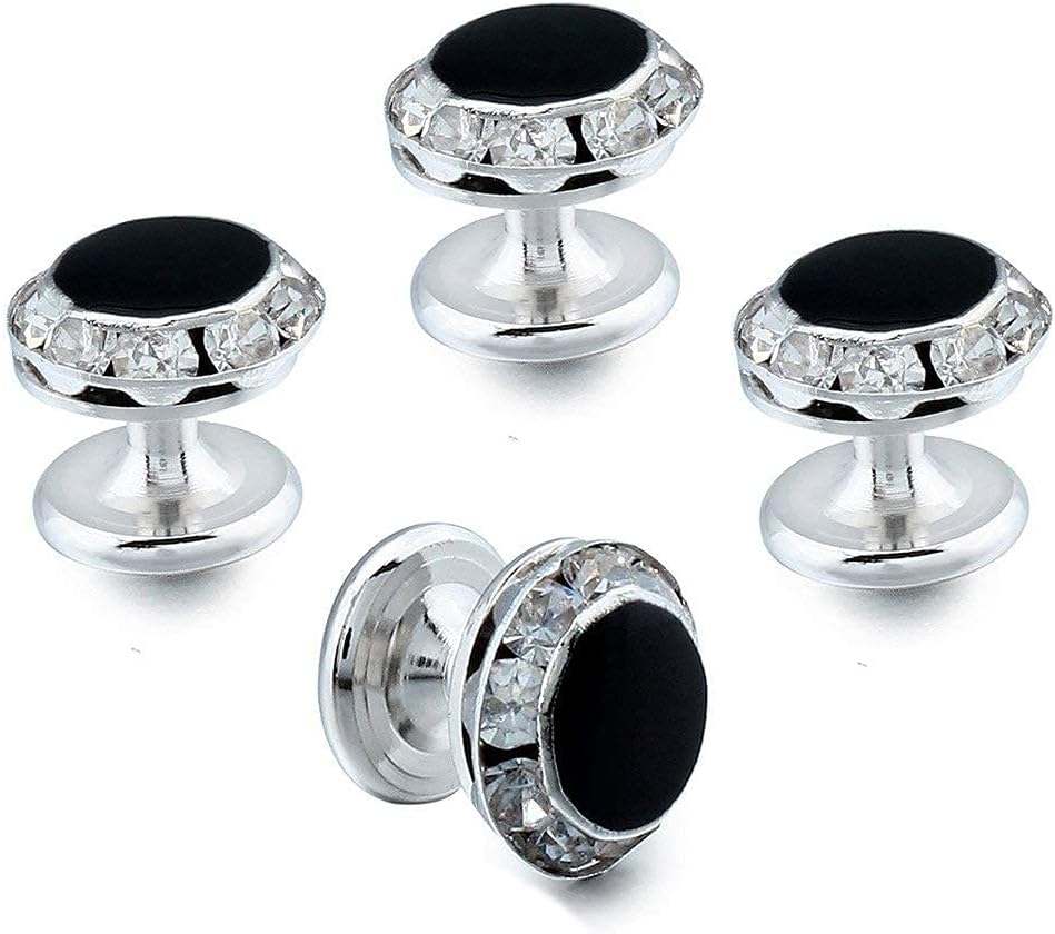 White crystal and black enamel studs and cufflinks set for men tuxedo always shine and be flexible closure, easy to put on and won't slide out.