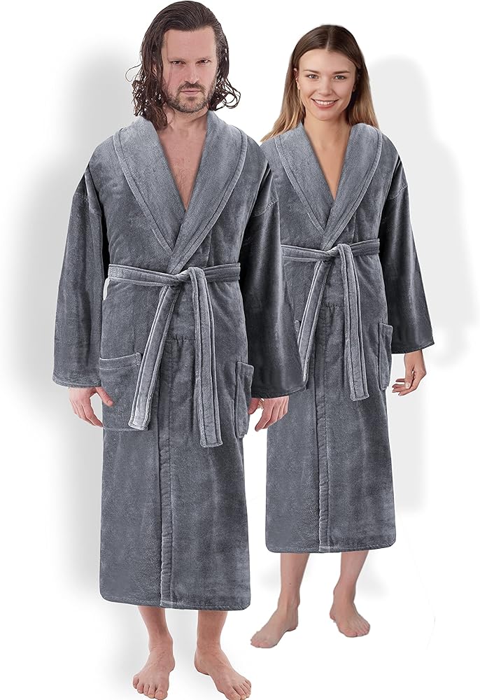 ✅ 𝐔𝐧𝐢𝐬𝐞𝐱 𝐃𝐞𝐬𝐢𝐠𝐧: Look fabulous and feel great in the perfect year round robe designed for both men and women! Our bathrobe's shawl collar and adjustable belt tie allow for a comfy and secure fit on anyone.