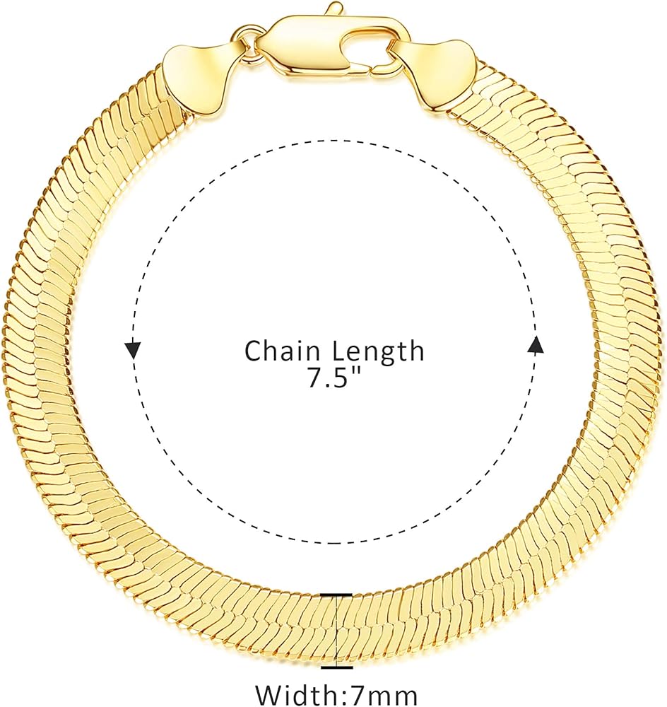 Bracelet length: The snake chain bracelet length is 7.5" long and the width is 4.5mm/7mm wide. Choose the length that suits you . The gold chain bracelet has the most comfortable wearing experience.