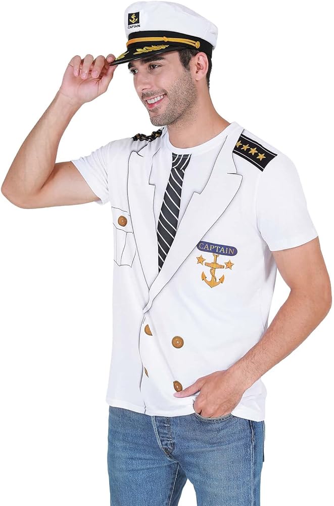 Funny World Men's Captain T-Shirt Graphic Short Sleeve Yacht Party Costume