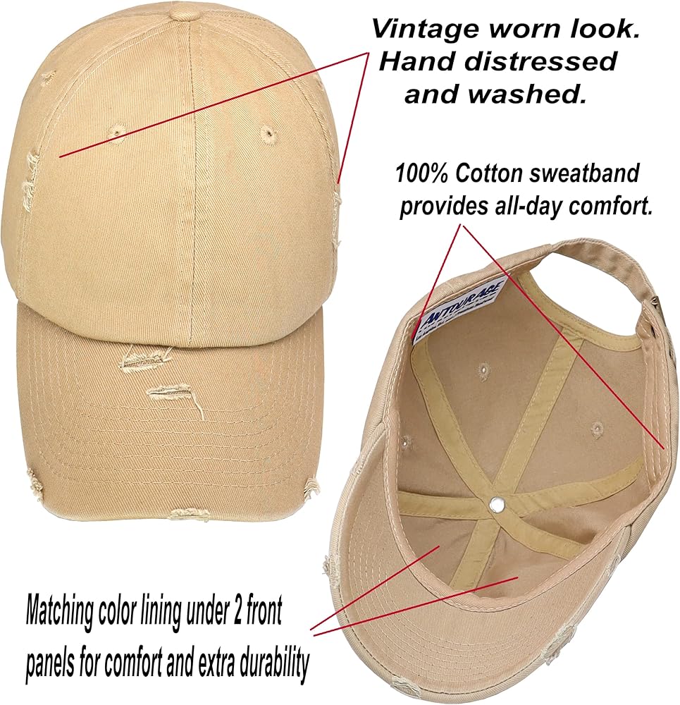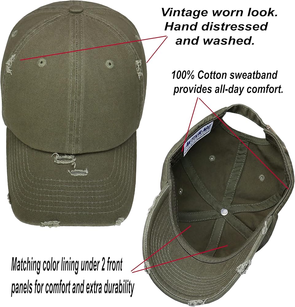 Premium Quality: 100% premium cotton twill fabric. Cotton sweatband provides all-day comfort. Durable yet lightweight. Antourage plain distressed baseball cap for men and women are only 3.3 OZ.