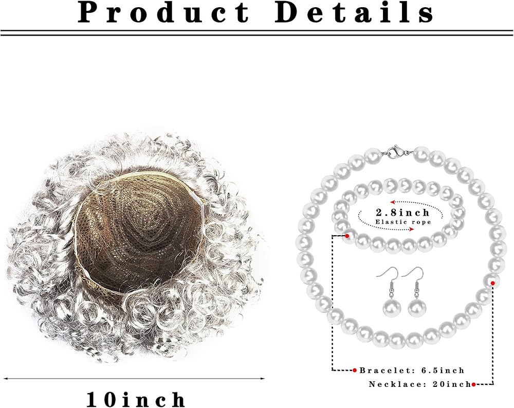 🤶【High Quality】📿--The Old Woman Wig Made Of Synthetic Fiber, Won't Be Easily Destroyed, Faded Or Make Your Scalp Itchy and Hair Is Thick And Not Sparse. Wig Cap Is Made Of Nylon. Necklace Made Up of Faux Pearls And Durable Metal Lobster Clasp.
