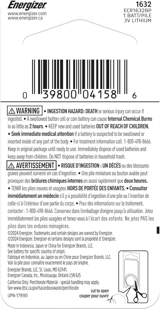 Don't let their small size fool you: This Energizer 1632 Lithium Coin 3-Volt Battery delivers big time on long-lasting, dependable power for your coin-battery-operated items. From heart rate or glucose monitors, to remotes, keyless entry systems, key fobs, watches, toys and games, and even more specialized devices, our coin batteries are compatible with the devices that fit your life, so you can keep going. These reliable and durable Energizer Coin Lithium Batteries are able to withstand a wide range of temperatures (from -22º to 140º F) and can hold power in storage for up to eight years, giving you coin battery power you can depend on. Responsibly designed with zero mercury, it's easy to see why Energizer Lithium Coin Batteries are the right choice for your specialty devices.