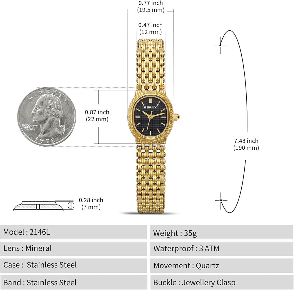 Women's watches with high quality: Imported Japanese quartz movement, providing precise and accurate time keeping. Oval watches for women with mineral glass protects watch from scratches, long lasting stainless steel band and case, providing excellent wearing experience.